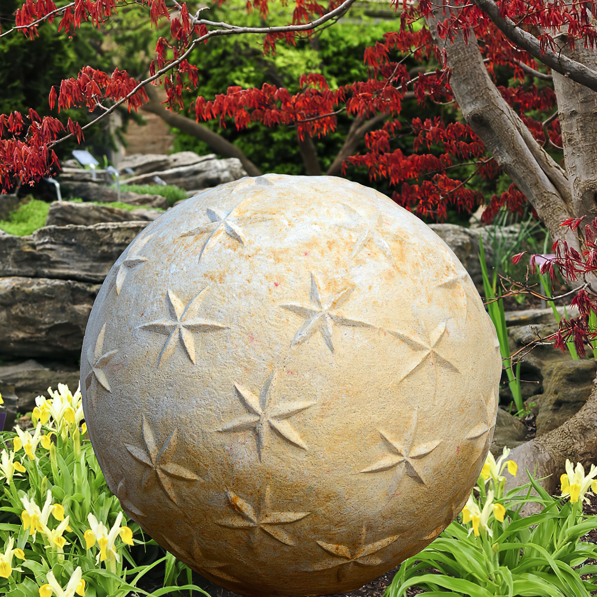Nous vous souhaitons la bienvenue chez GARTENTRAUM et sommes ravis que vous appréciez Aristo, notre boule décorative en pierre pour un design de jardin raffiné. Cette boule en pierre simple mais très décorative, ornée d'une application étoilée, séduit par son élégance intemporelle et s'intègre harmonieusement dans presque tous les styles de jardin. Que ce soit à l'entrée, dans le jardin avant, sur la terrasse, dans un parterre de fleurs ou près de l'étang, ces boules décoratives en pierre moulée de haute qualité attirent le regard. Nos éléments décoratifs élégants apportent vie à chaque espace extérieur. Particulièrement dans les jardins modernes avec une végétation soignée, notre boule en pierre est idéale pour ajouter des accents nobles. Ces boules décoratives prennent tout leur charme en ensemble, associées avec style à des pots et jardinières. Placées en bordure d'une allée ou d'une entrée, ces jolies boules en pierre moulée forment une barrière naturelle. Laissez libre cours à votre créativité dans le jardin – toute l'équipe de Gartentraum vous souhaite beaucoup de plaisir à décorer !