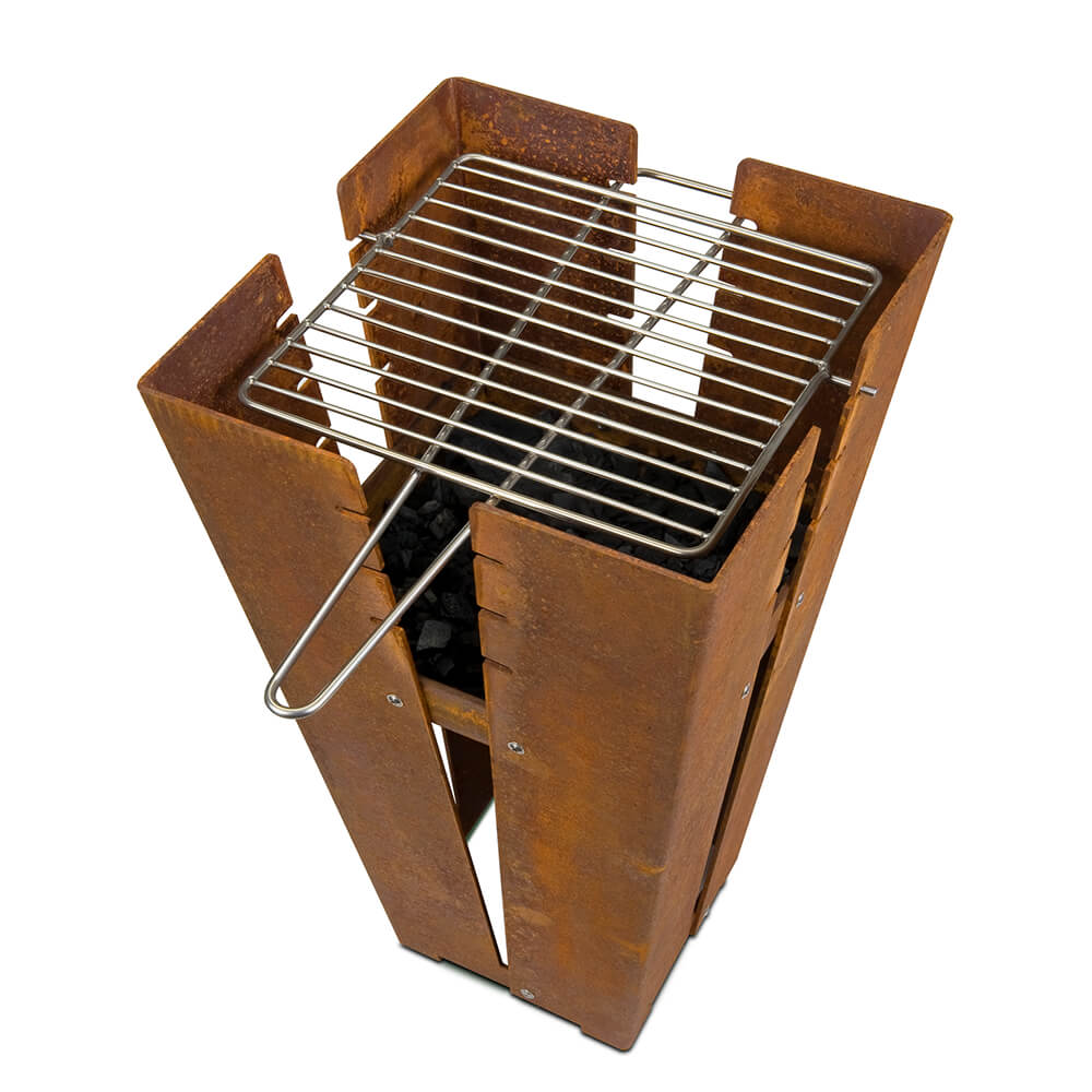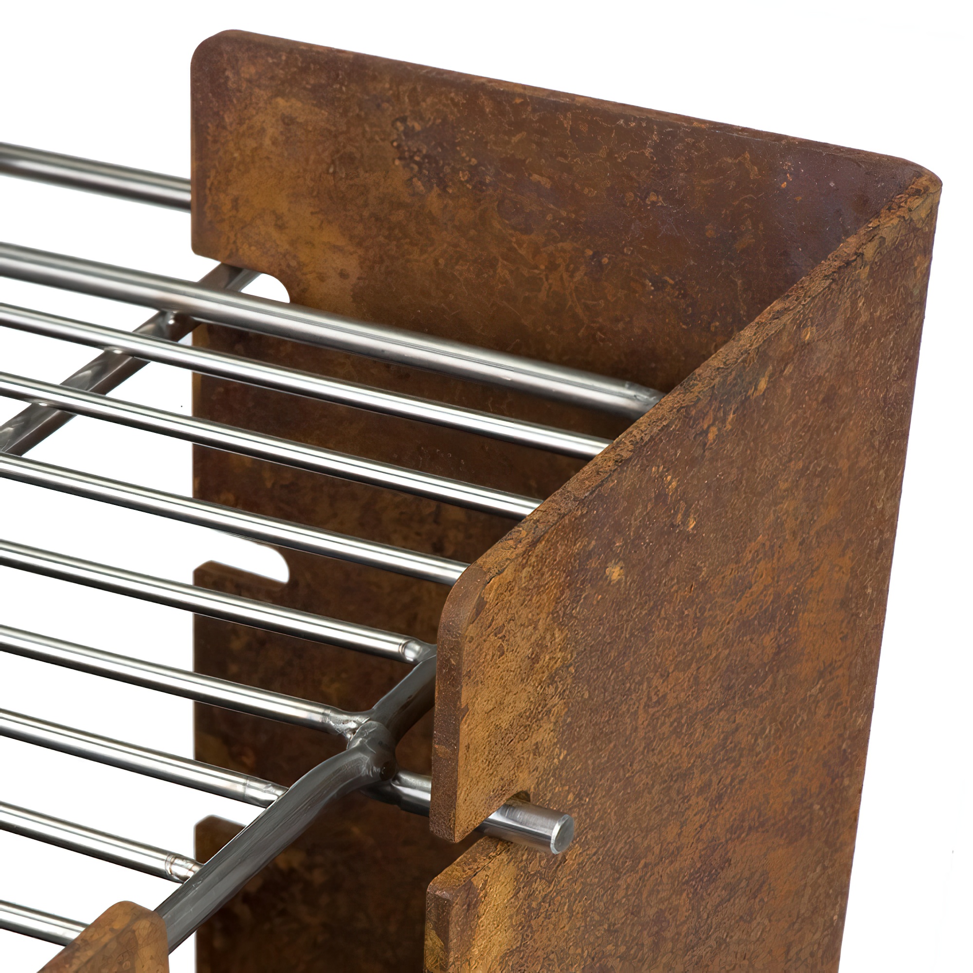 Avec un brasero de la collection NOBILIS METALLUM, vous optez pour un design moderne, une fabrication de qualité et un savoir-faire artisanal allemand. Les paniers à feu sont fabriqués en acier de 3 mm d'épaisseur, résistant aux intempéries (similaire à l'acier Corten). Cela permet de laisser les braseros à l'extérieur toute l'année, comme une œuvre d'art. Ce sont les effets des intempéries qui créent l'aspect rouillé unique et la patine sur la surface. Ce foyer est disponible en option avec une grille de cuisson, ce qui le rend polyvalent.