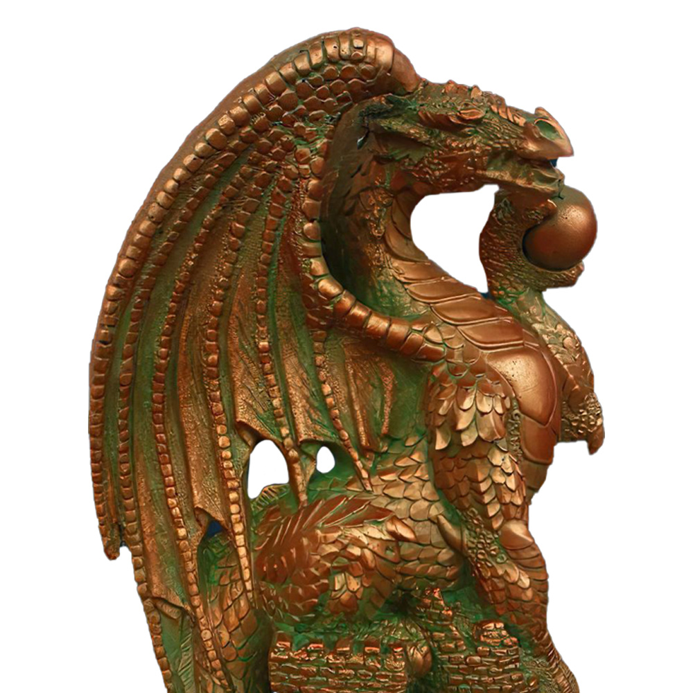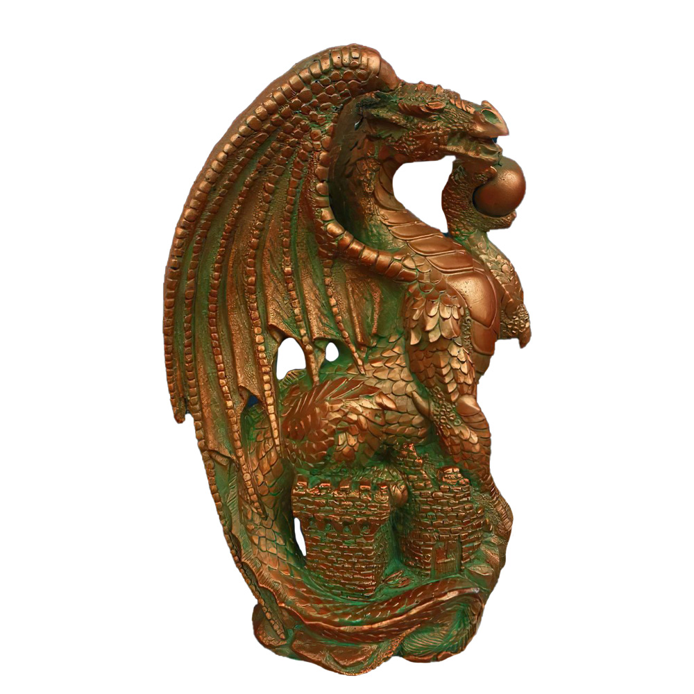 Detailreiche Dekofigur aus Steinguss für den Garten - Drache auf Burg - Tiziano / Tyrolia