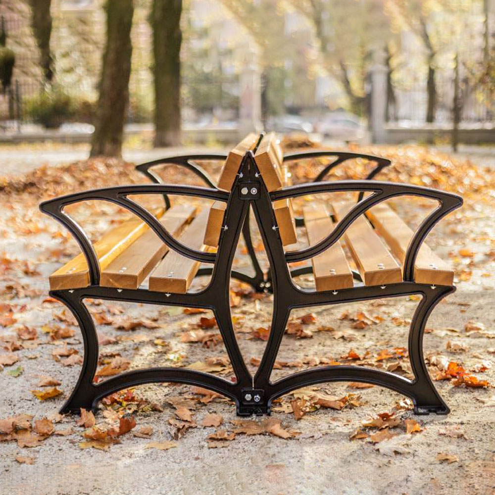Doppelte Gartenbank mit Armlehne aus Holz und Gusseisen - Eirik