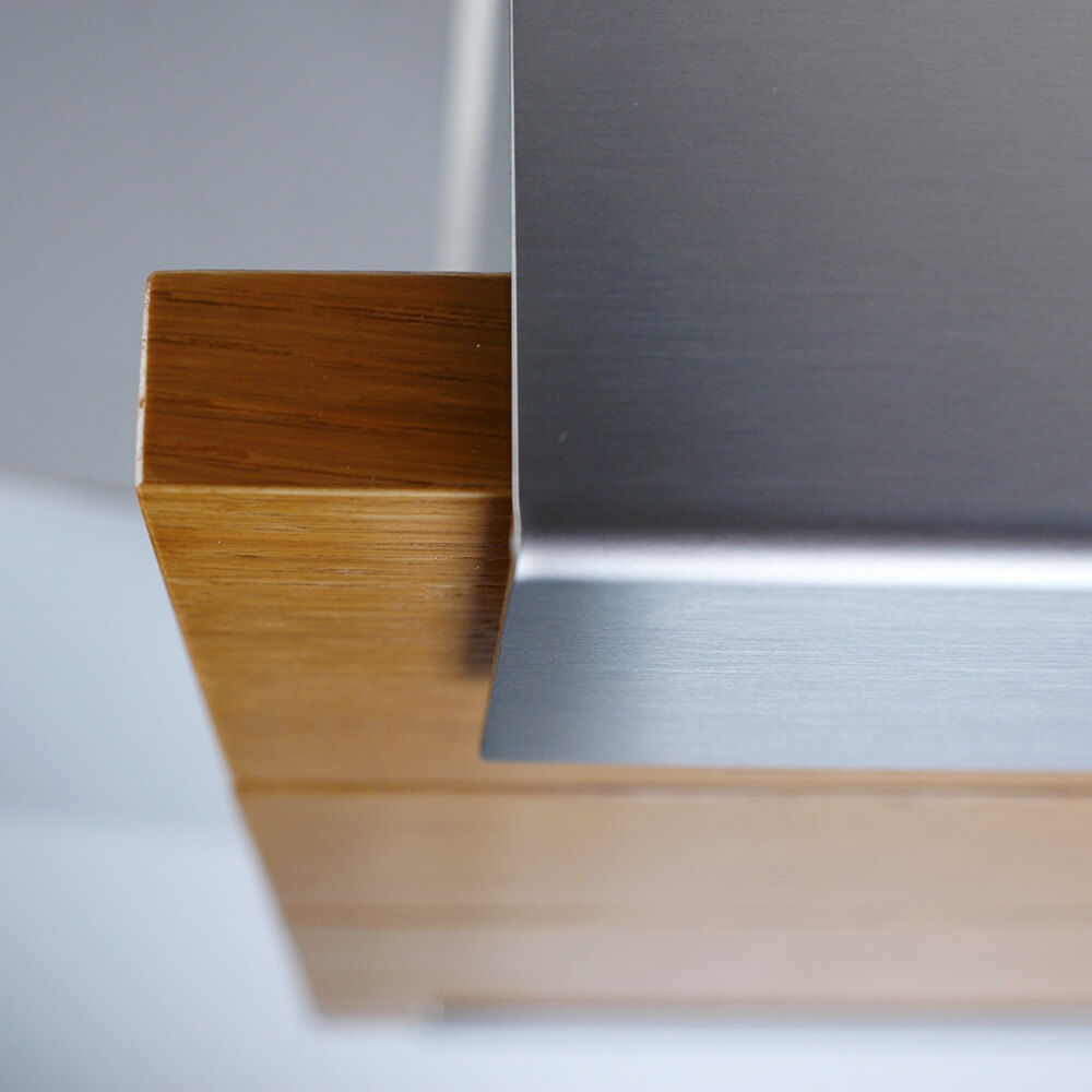 La boîte aux lettres ANEMOI est fabriquée en acier inoxydable brossé avec une épaisseur de matériau de 2,0 ou 1,5 mm. La façade est composée de 4 planches de chêne transparentes laquées (20 mm). Les éléments d'amortissement intégrés ferment la trappe d'insertion lentement et silencieusement. Les dimensions de la fente d'insertion respectent la norme postale, tous les bords sont joliment arrondis et une protection contre le retrait non autorisé est incluse. Le courrier repose sur un double fond surélevé à l'intérieur de la boîte. Le kit de montage comprend également 4 bagues d'espacement pour fixer la boîte au mur ou sur des supports. Le porte-journaux assorti est également disponible dans notre boutique.