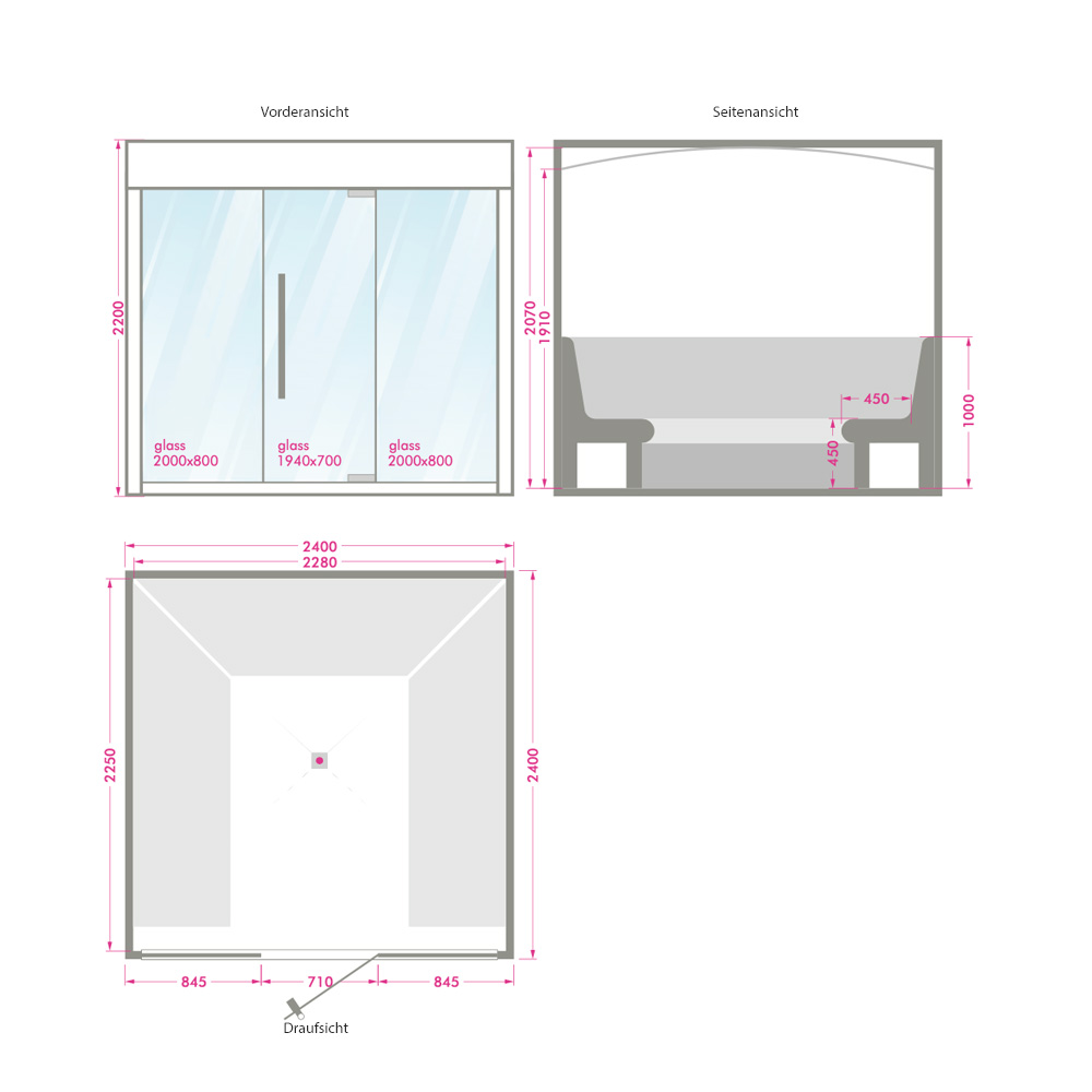 Vous recevrez un plan 2D personnalisé. Nous serons ravis de créer avec vous une oasis de bien-être conforme à vos attentes. À votre charge :