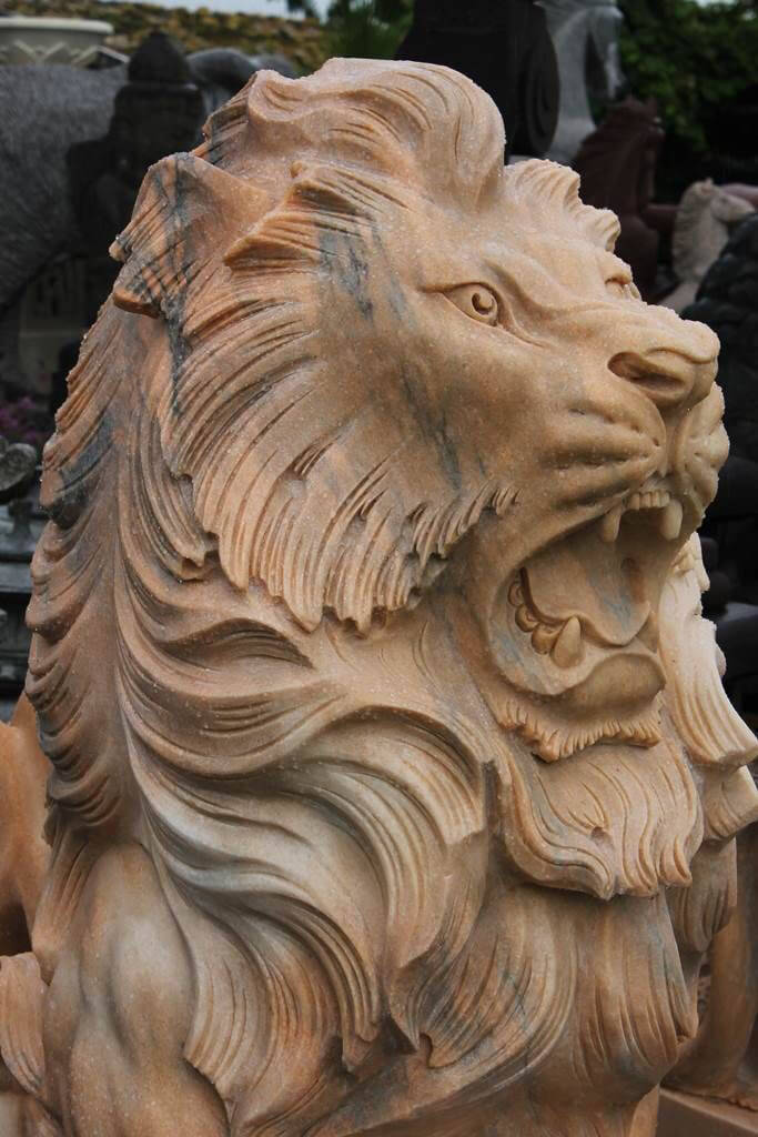 Ces sculptures de lions en marbre sont de véritables chefs-d'œuvre de l'art de la sculpture. Chaque lion est minutieusement taillé à la main dans la pierre avec un grand soin. Le marbre aux nuances rouge-orangé flamboyantes met en valeur l'aspect noble et raffiné de ces pièces. La surface de la pierre est partiellement polie, ce qui fait ressortir magnifiquement les couleurs et les veines du marbre. Ces statues élégantes apporteront une touche d'expression unique à votre jardin et attireront tous les regards.
