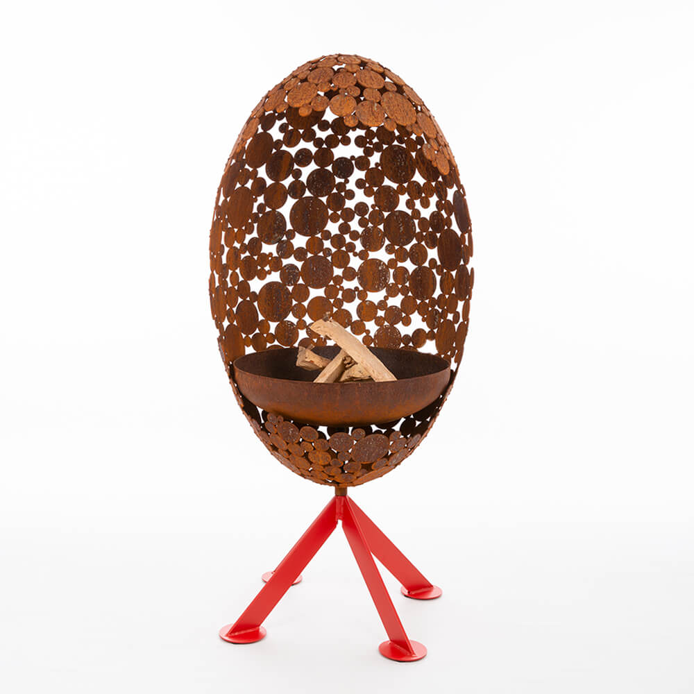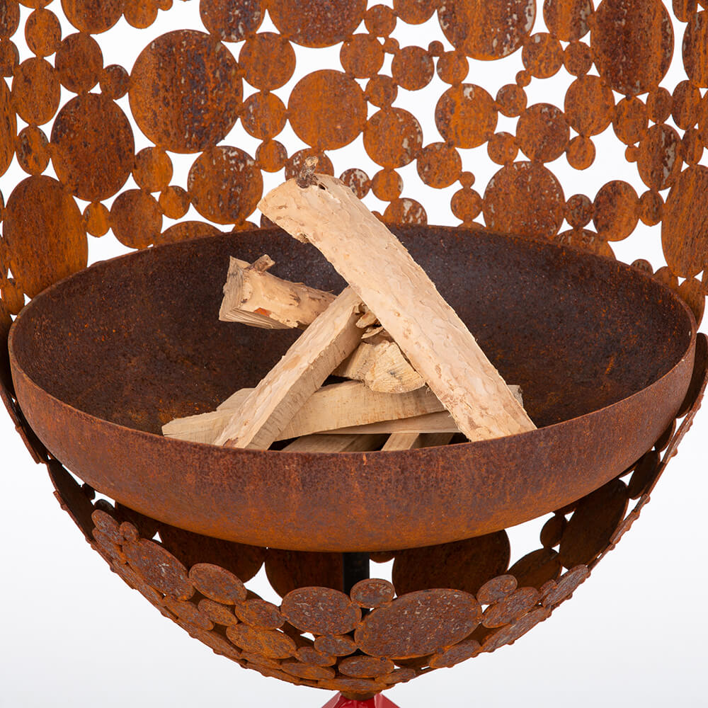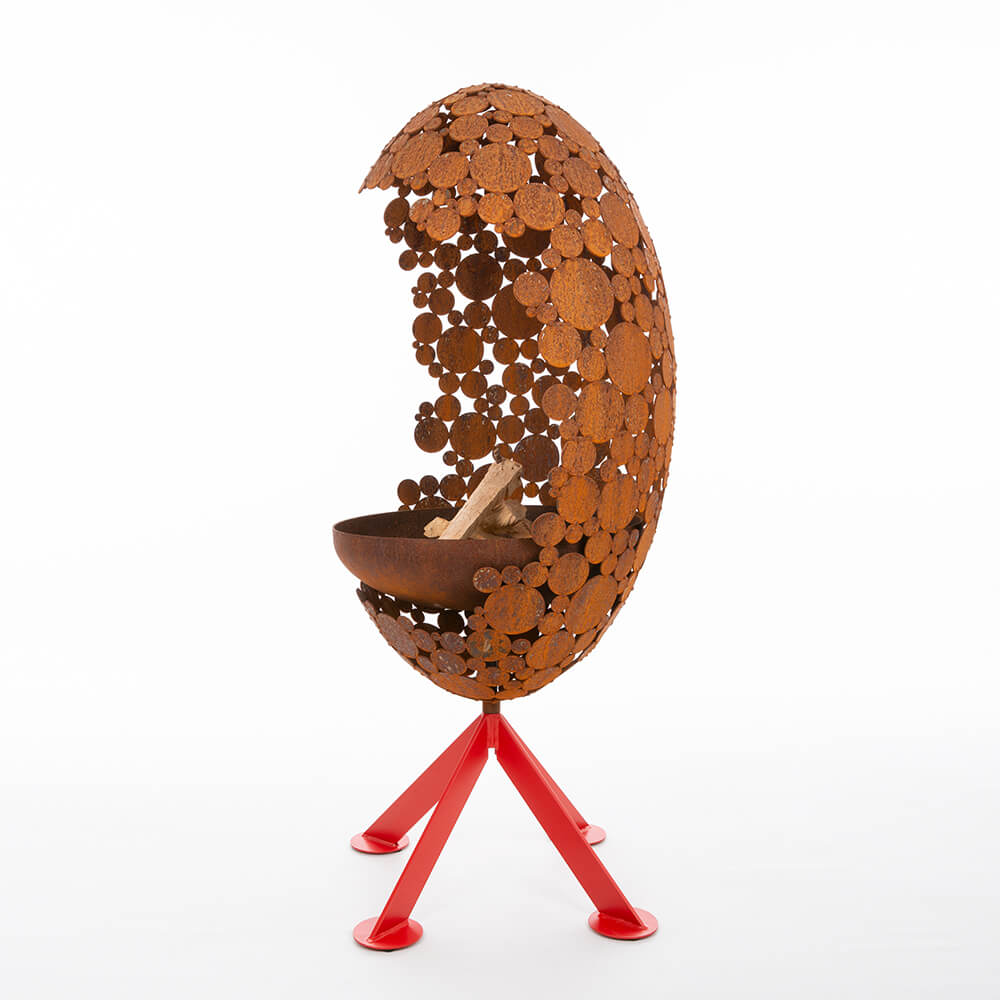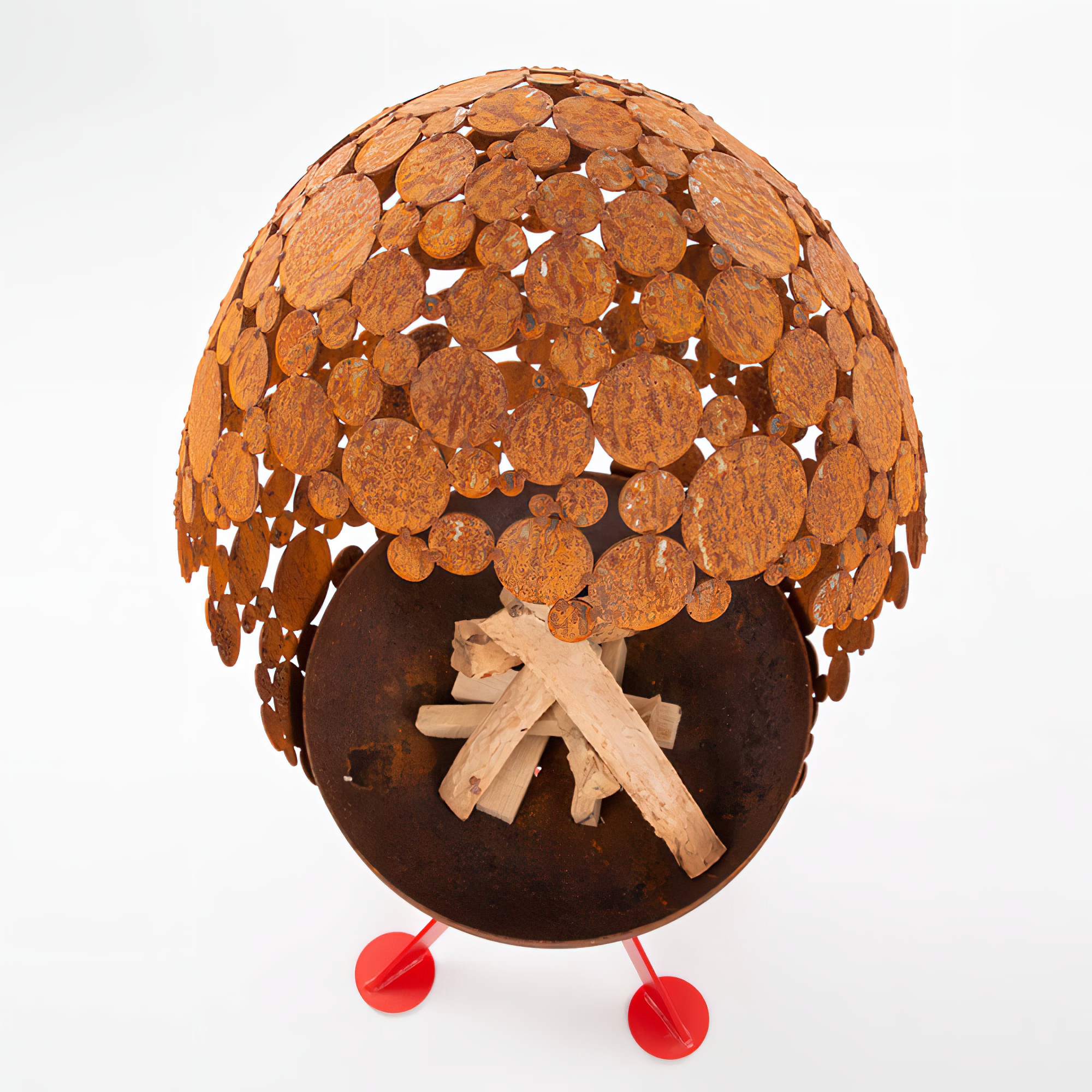 Cette œuvre d'art soigneusement conçue est accompagnée d'un insert pouvant servir de brasero. Le cocon est résistant au feu et offre un spectacle unique. Les matériaux réutilisables symbolisent le retour du renouveau. Ainsi, cette œuvre révèle toujours quelque chose de nouveau, surprenant le spectateur de multiples façons.