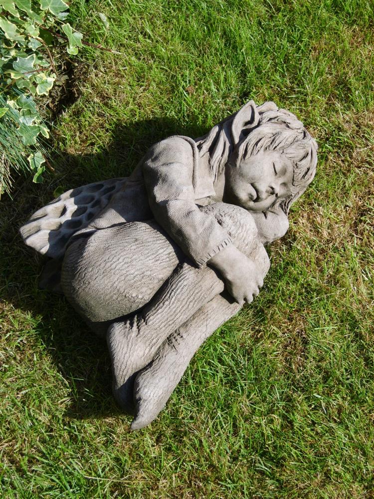 Figurine d'elfe élégante en pierre, allongée, pour la décoration de jardin