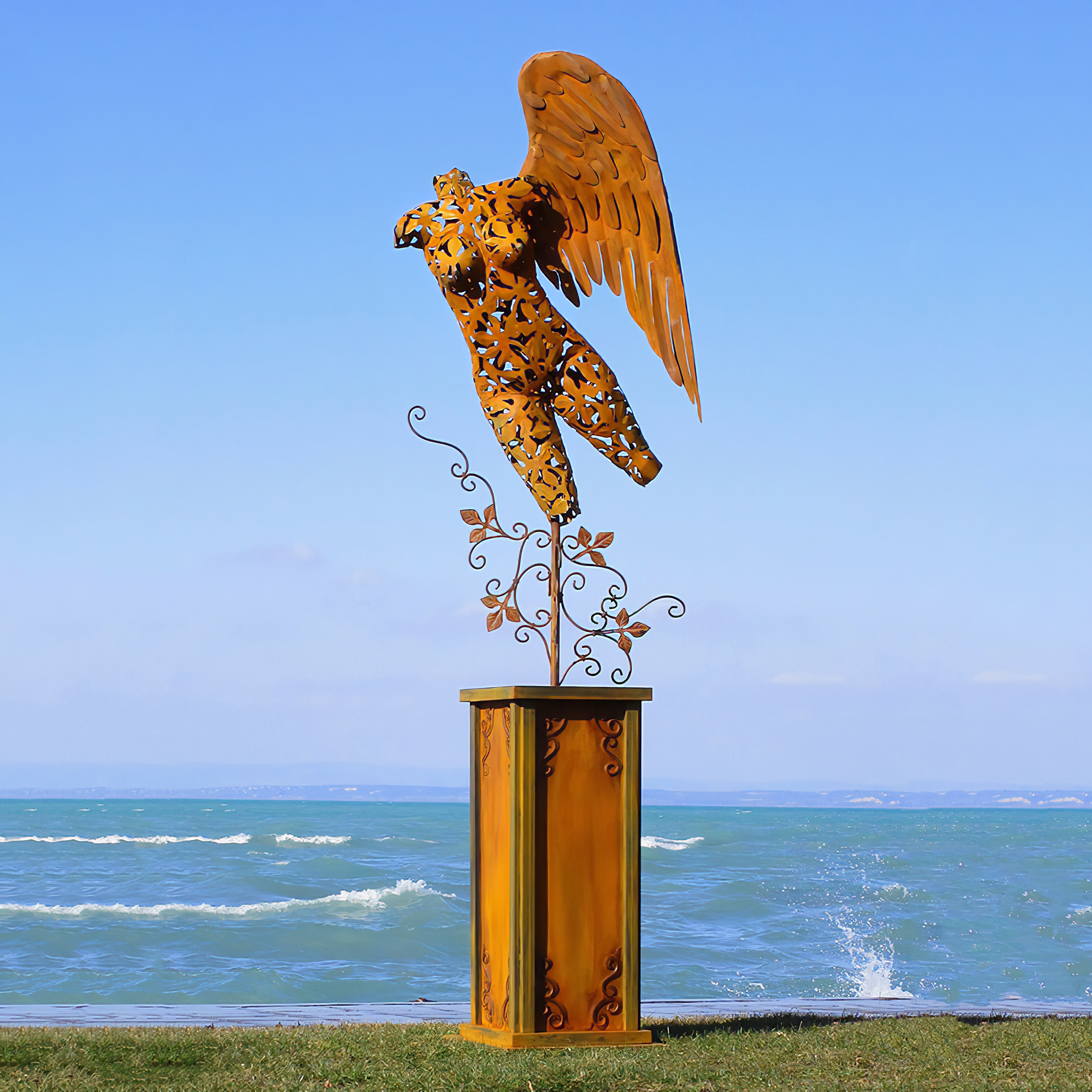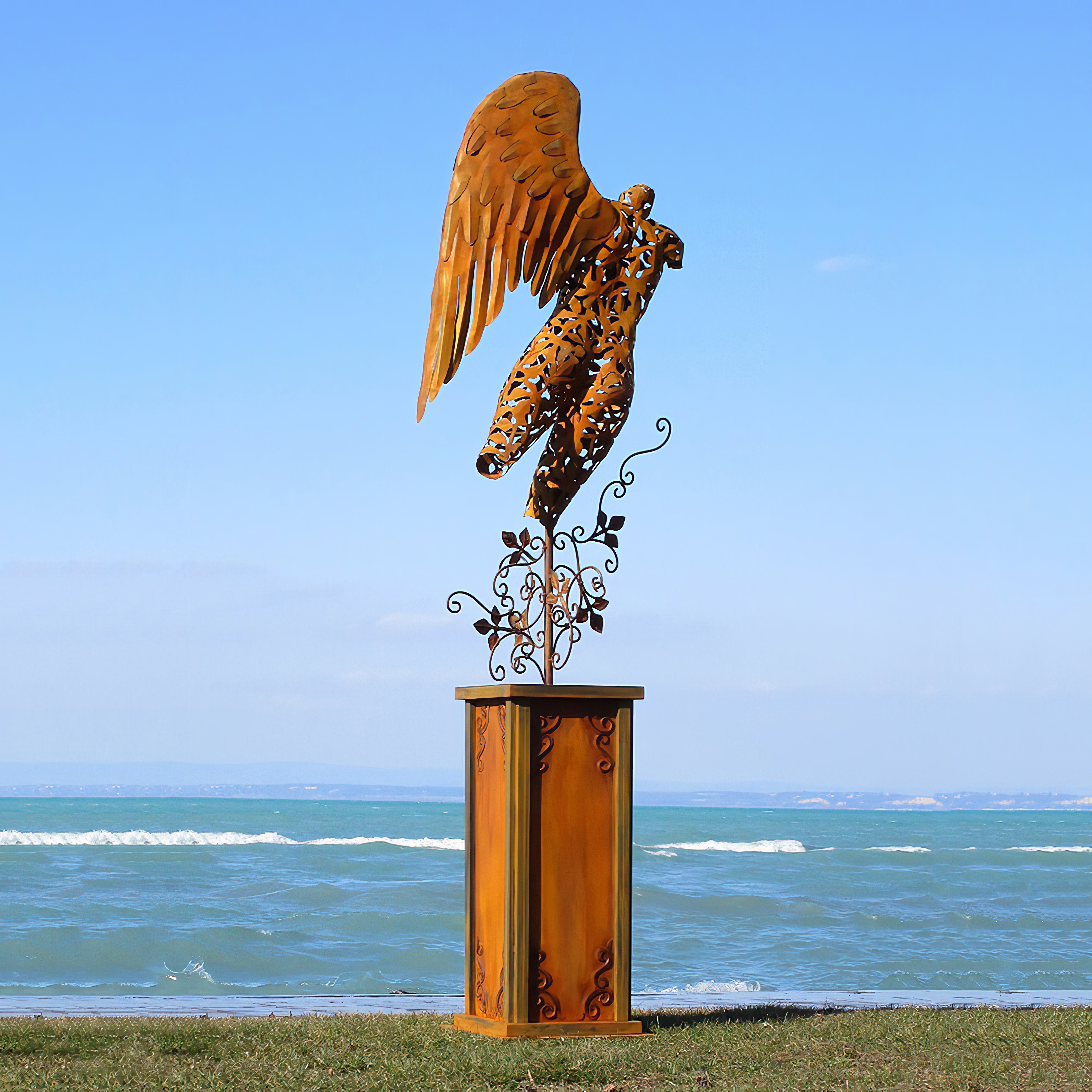 Engel Torso mit Podest aus Metall im floralen Design - Volantini / Stahl - Rost