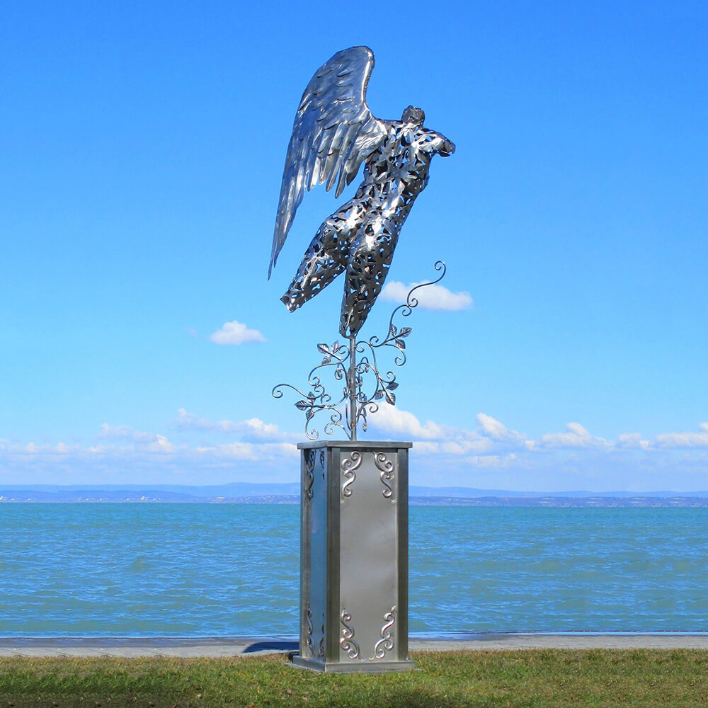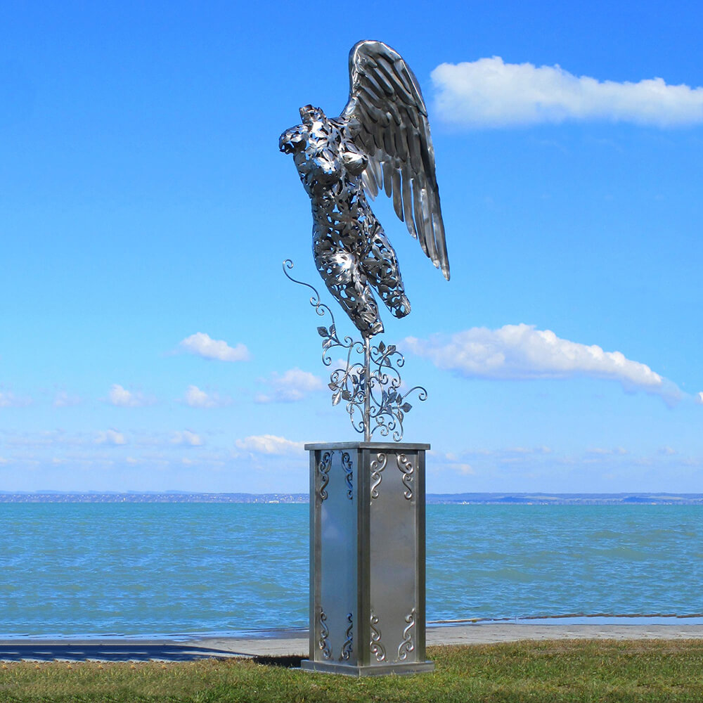 Les sculptures exceptionnelles de notre artiste hongrois sont des pièces uniques réalisées artisanalement. Elles sont fabriquées soit en acier inoxydable résistant à la corrosion, soit en acier (St37). Ce dernier est traité à l'acide pour obtenir une patine rouillée attrayante. Ces sculptures rouillées sont protégées par un revêtement qui prolonge leur durée de vie à environ 50 ans. Après cette période, il est possible de restaurer les sculptures de jardin. Les figures sont résistantes aux intempéries et aux tempêtes. L'acier utilisé a une épaisseur d'environ 0,5 à 1 mm. La structure est renforcée à l'intérieur par des barres rondes et des tubes. Des dispositifs de fixation pour le montage au sol, sous forme de vis ou d'anneaux, sont prévus afin de faciliter l'installation des sculptures dans votre jardin.