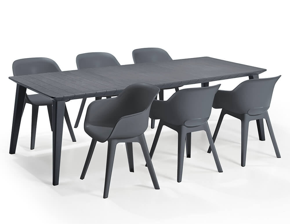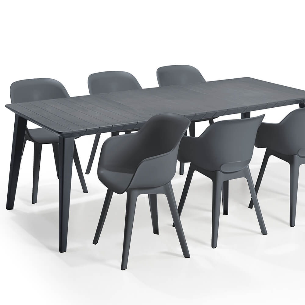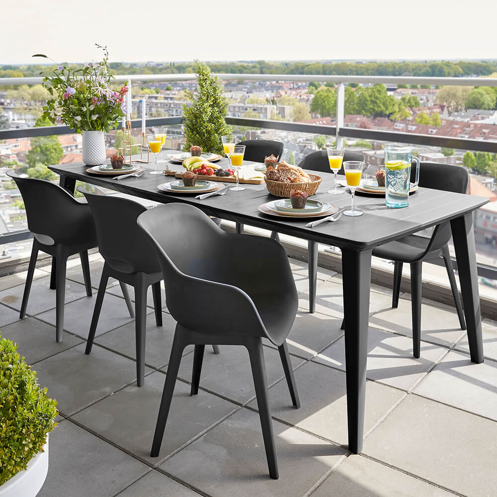 Nos meubles de jardin de haute qualité se distinguent par leur grande résistance aux intempéries. Que ce soit sur le balcon, la terrasse ou dans le jardin, cet ensemble de sièges séduit par son design élégant. Le plastique plein aéré offre un grand confort d'assise tout en étant particulièrement léger.