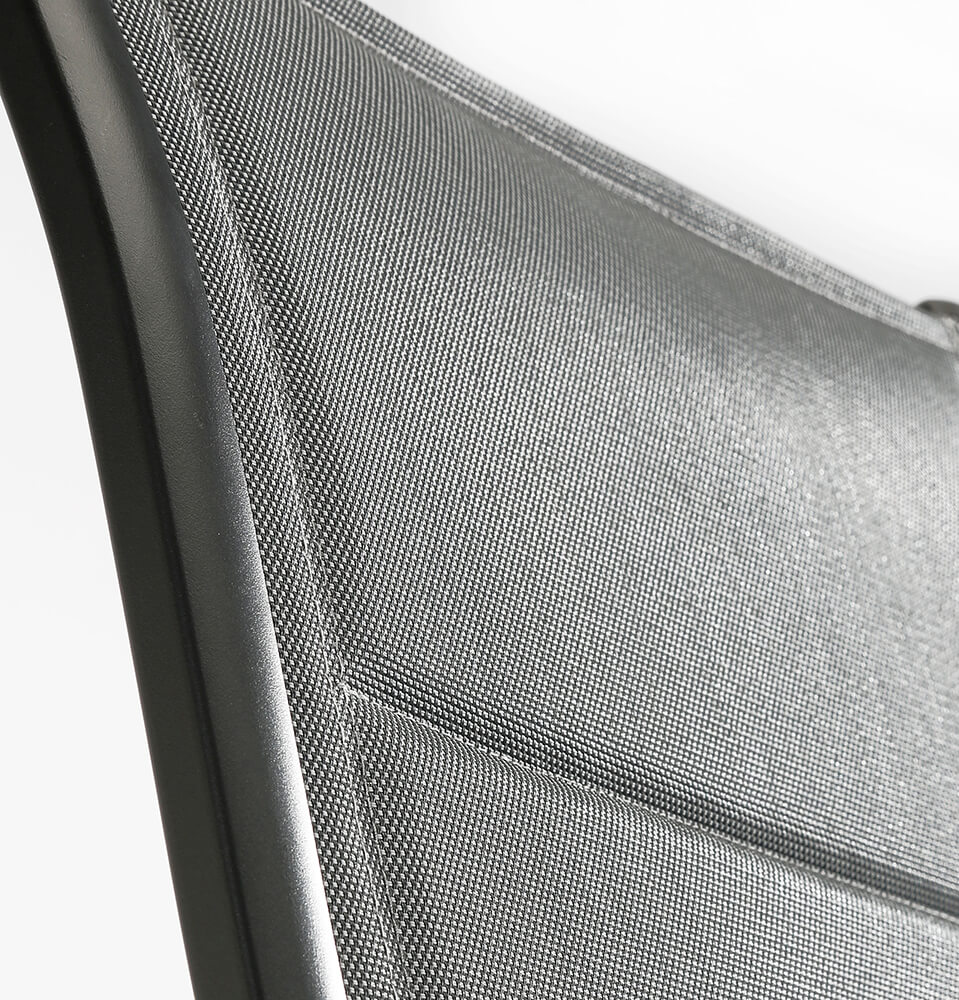 Nos meubles de jardin de haute qualité se distinguent par leur grande résistance aux intempéries. Que ce soit sur le balcon, la terrasse ou dans le jardin, la chaise séduit par son design élégant. Les surfaces d'assise et de dossier sont fabriquées en Ergotex respirant et résistant à la déchirure avec double revêtement, un polyester qui offre un grand confort, une durabilité, une respirabilité et une résistance à l'eau. La chaise empilable supporte jusqu'à 150 kg. La structure légère en aluminium inoxydable assure une manipulation aisée et est revêtue par poudrage coloré.