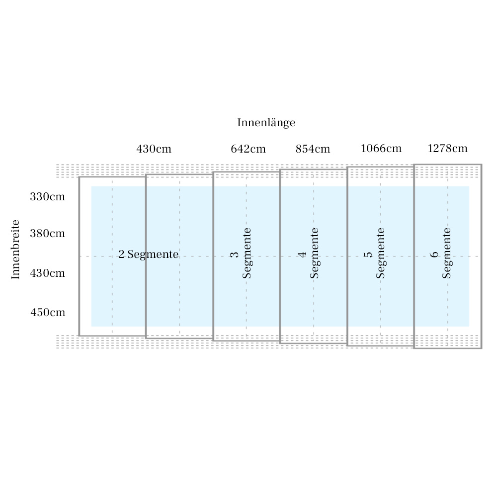 Extrem flache Poolabdeckung - Sonderanfertigung - Aluminium & Polycarbonat - Tansanit Low / 2 Segmente - 330x430cm (BxL)