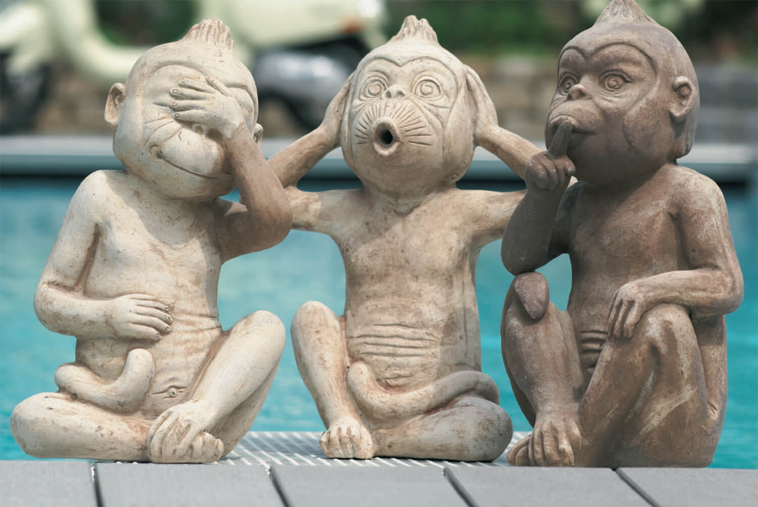 Le proverbe de Confucius « Ne rien voir, ne rien entendre, ne rien dire » a pris en Occident le sens de refuser de voir le mal et de fermer les yeux sur la vérité. Cependant, sa signification originelle au Japon est d'ignorer avec sagesse et optimisme les choses négatives afin de se protéger soi-même. Sur un panneau explicatif au Japon, ces figurines sont comparées à des parents qui veulent protéger leur enfant du mal. Aujourd'hui, ces singes sont des porte-bonheur bien connus au Japon et deviendront bientôt un véritable point fort dans votre jardin.