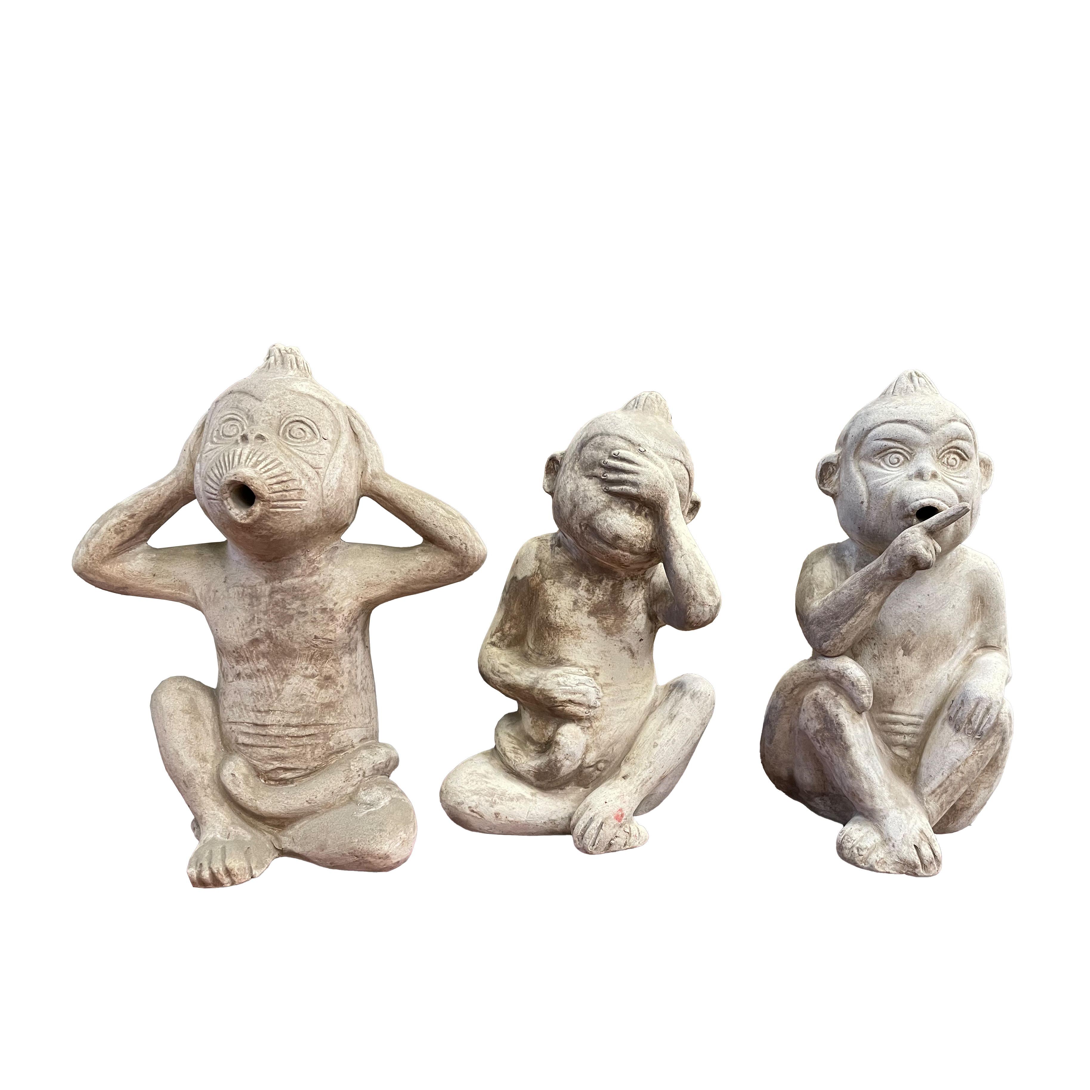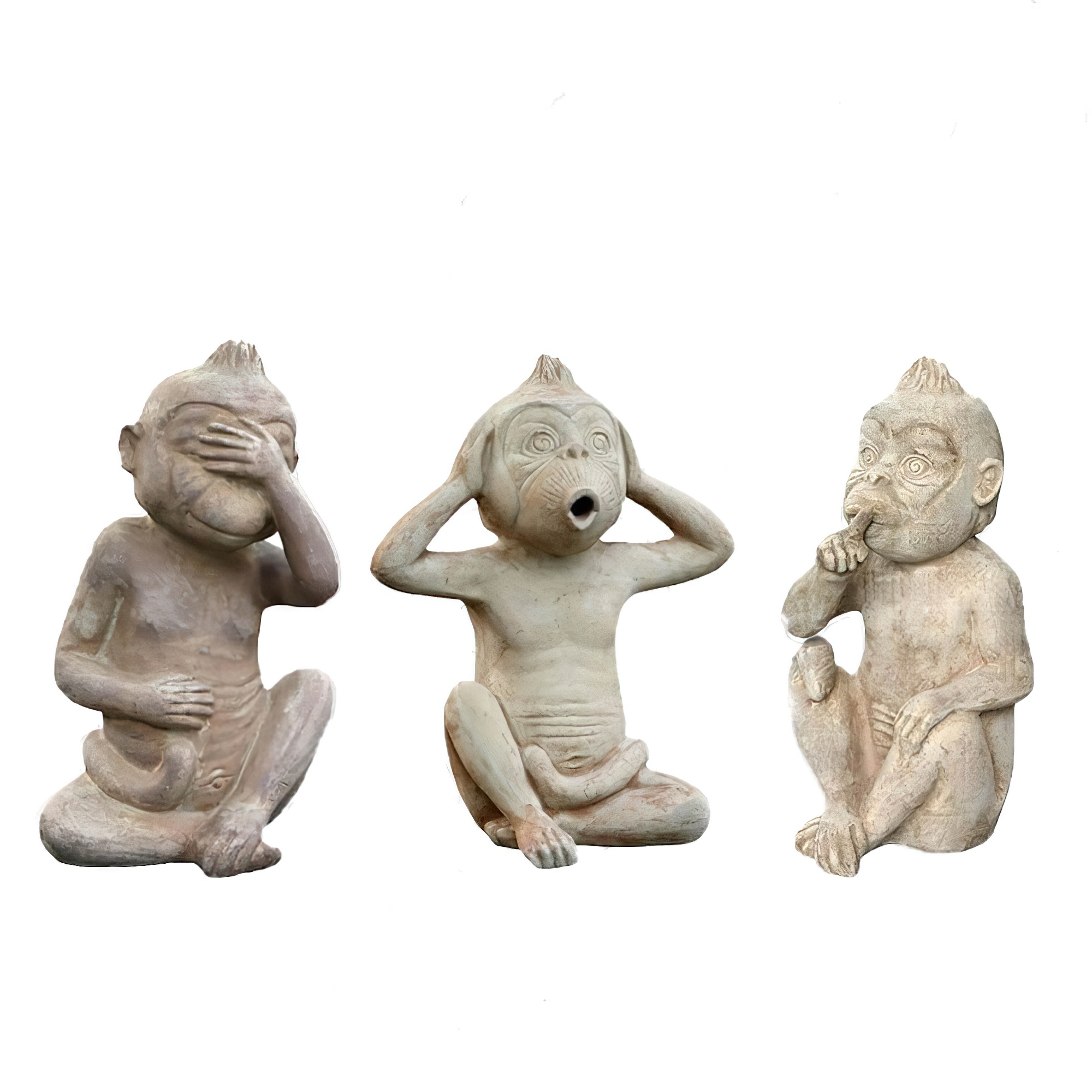 Figuren Set aus 3 Affen - Terrakotta - Nichts Sehen, Nichts Hören, Nichts Sagen - Yolandi