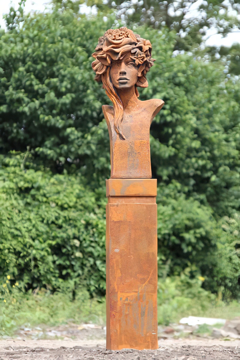 Florale Gartenbüste aus Steinguss - Aurora / Eisenoxid