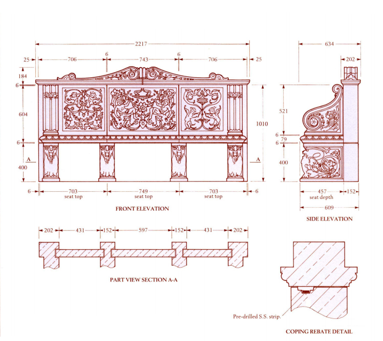 Garten Steinbank mit Lehne - Raynham Hall / Sand