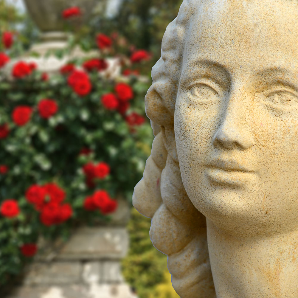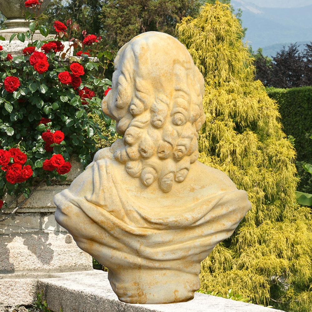 Cette buste féminine classique et artistiquement précieuse est parfaitement conçue pour une décoration de jardin élégante. Ce sont surtout les nombreux détails soignés qui attirent immédiatement le regard : le visage sensuel et le regard rêveur, les boucles en tire-bouchon et la forme d'une rose qui se reflète dans les cheveux et la robe. Le décolleté généreux est subtilement souligné par une épaule délicate que le manteau ne couvre pas. Sans aucun doute : cette buste féminine en pierre est un véritable bijou pour chaque jardin. Pour sa fabrication, un moulage en grès d'Elbe noble, en harmonie avec le design, est utilisé, idéal pour le modelage en relief de cette statue élégante.