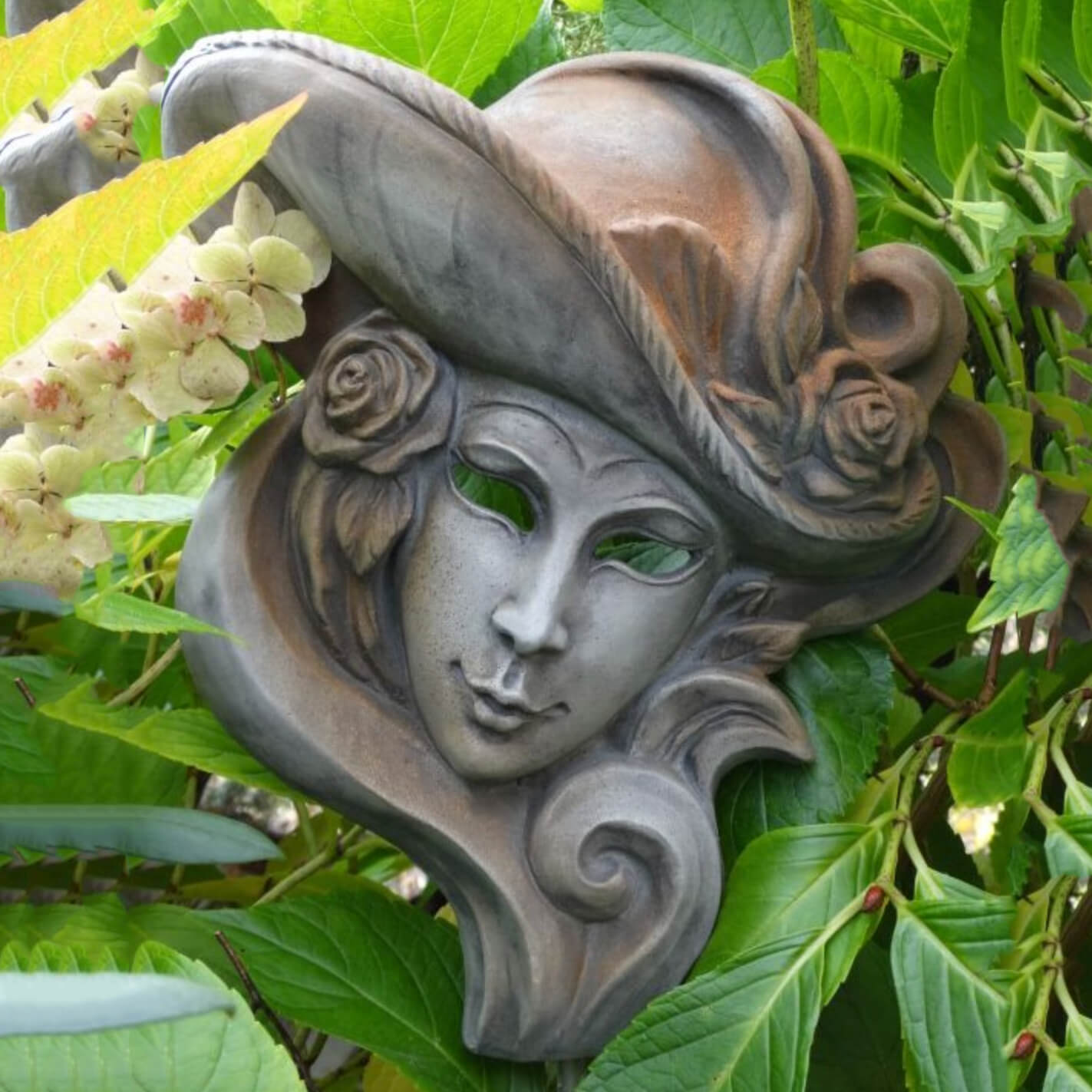 Gartendeko Maske aus Steinguss inkl. Ständer - Clorinda / Grau