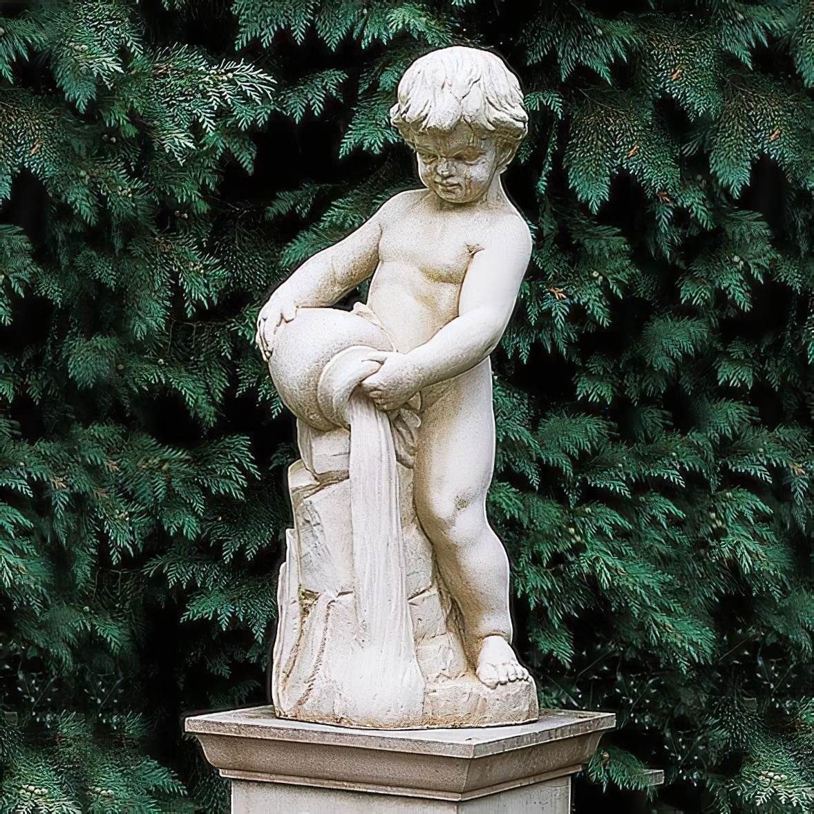 Gartenfigur mit Putte aus Stein - Elementum Aqua / Steingrau