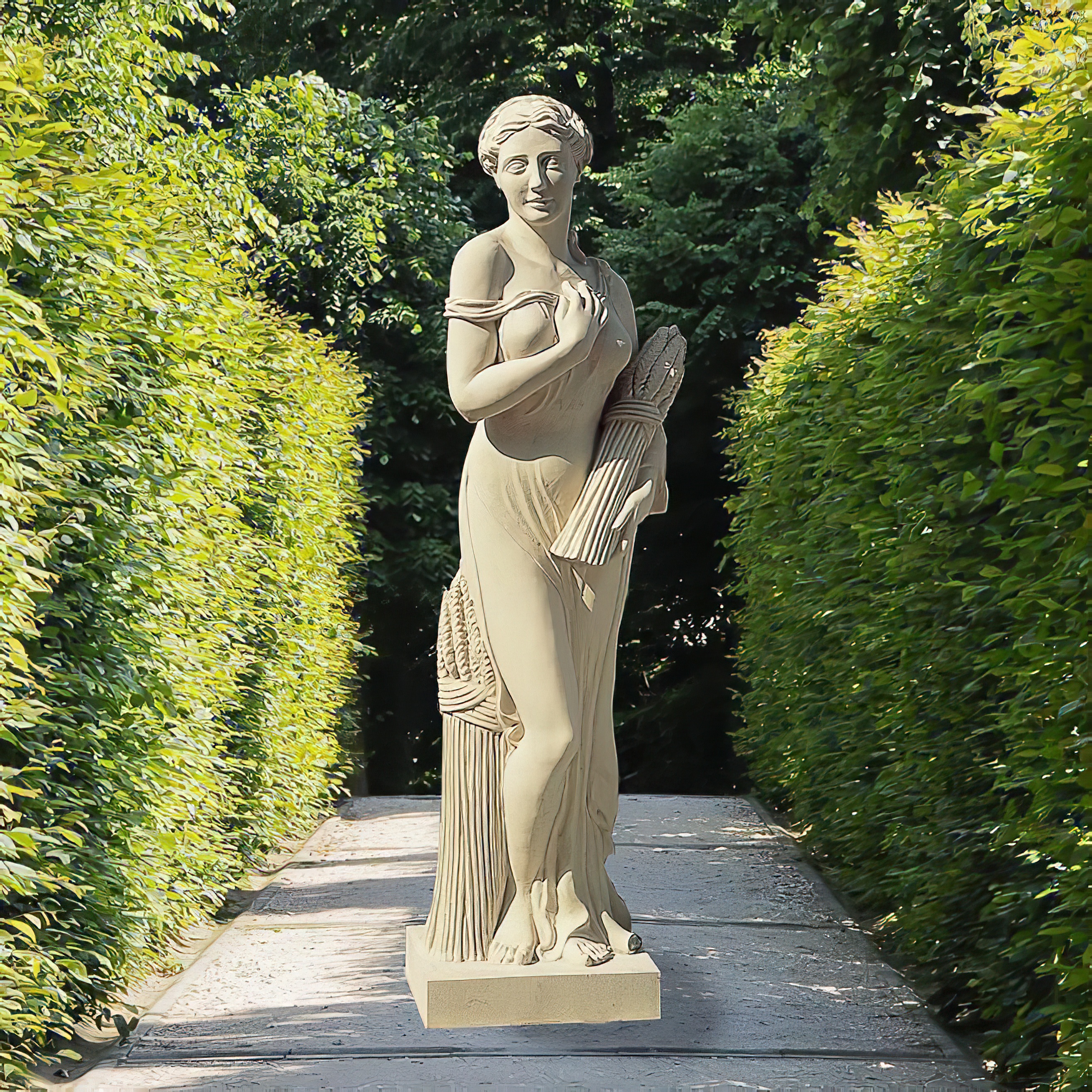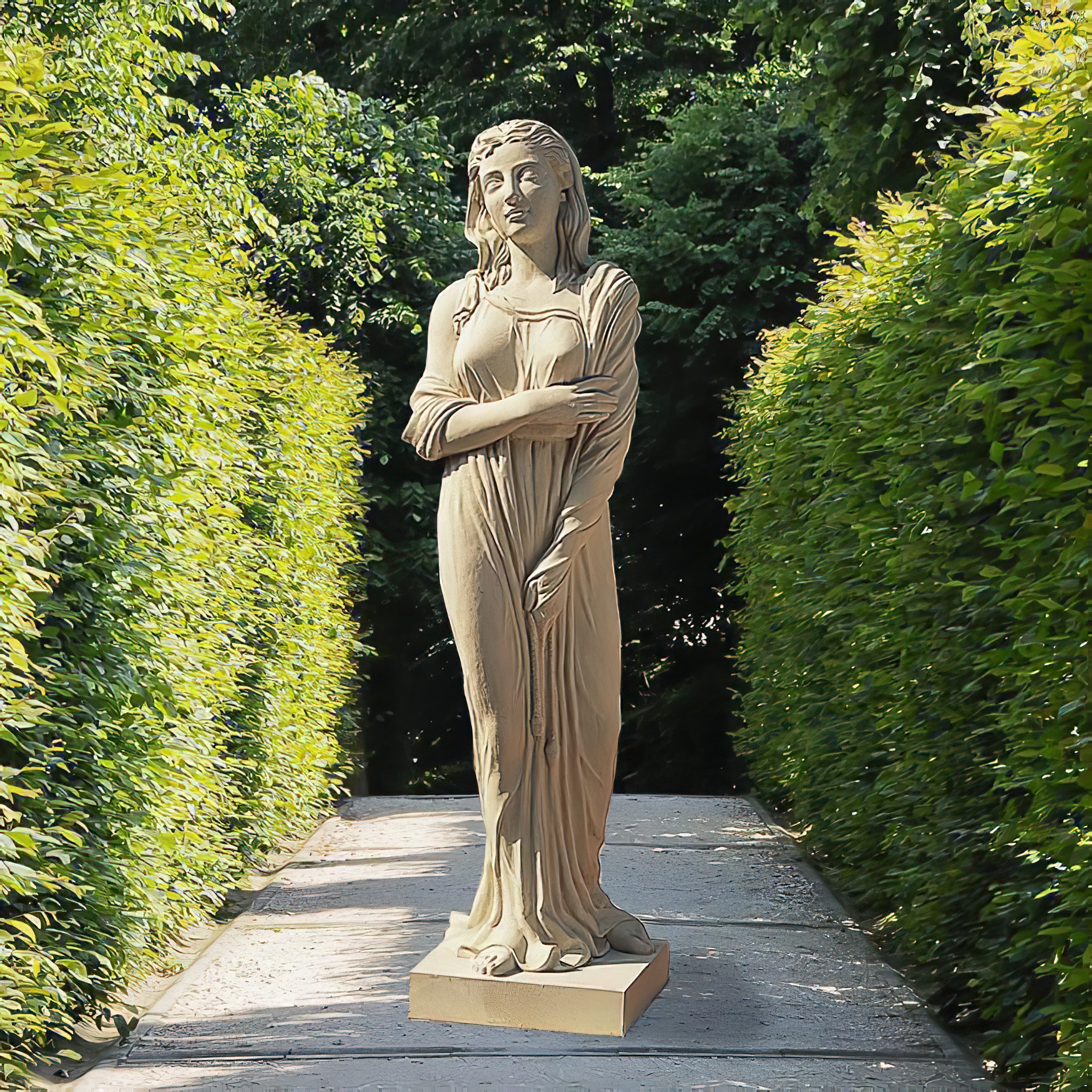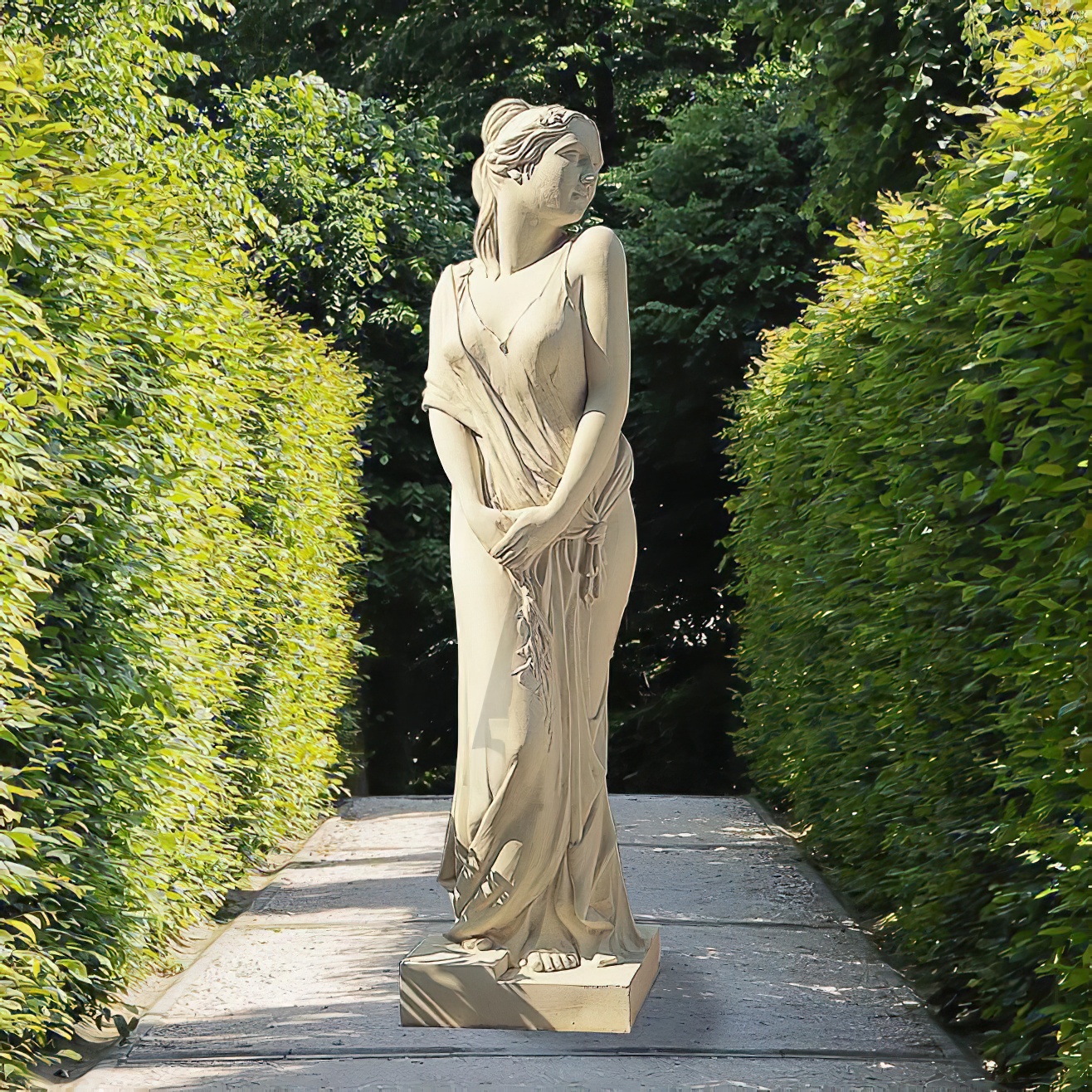 Statue élégante en pierre représentant une jeune femme incarnant l'hiver