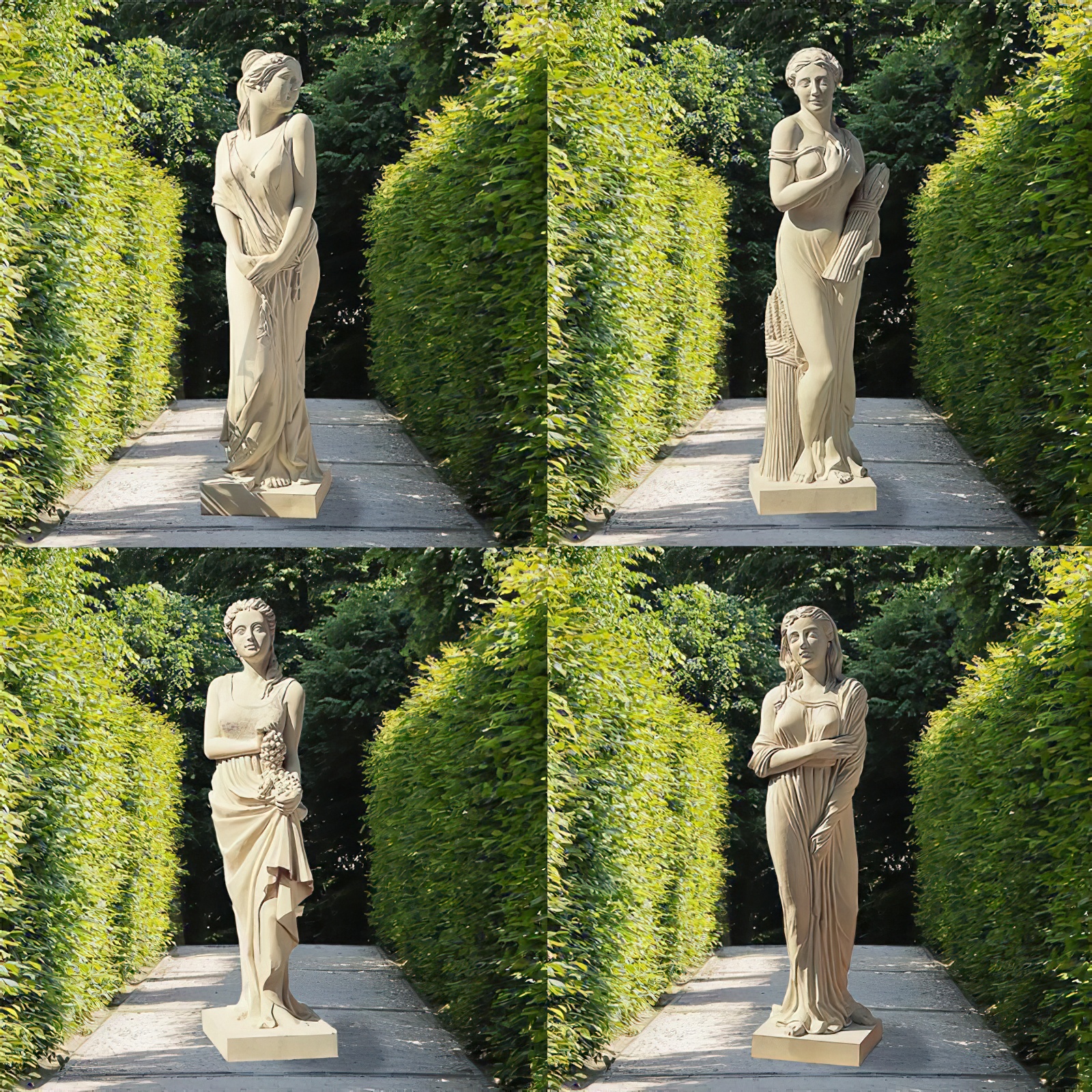 Cette belle sculpture de jardin est réalisée selon une méthode traditionnelle de moulage en pierre. Notre tailleur de pierre en Angleterre crée d'abord à la main un moule creux de la sculpture. Ensuite, un mélange de pierre artificielle de haute qualité, légèrement humide, est coulé et teinté avec les pigments désirés. Après le démoulage, la figurine des Quatre Saisons reçoit sa finition finale. Fidèle à son nom, cette pièce convient parfaitement comme décoration extérieure durant la saison froide. Cela s'applique d'ailleurs à toutes nos figurines des Quatre Saisons – elles sont toutes résistantes au gel et aux intempéries. L'aspect naturel de la pierre permet une intégration harmonieuse dans tout aménagement paysager existant. Que ce soit comme bordure décorative, point focal sur la pelouse, ornement pour la cour intérieure, embellissement de la terrasse ou statue romantique dans un coin discret, cette figurine des Quatre Saisons apportera une touche d'exception à votre propriété. En commandant sur notre boutique en ligne, la figurine d'hiver vous sera livrée sans frais de port en Suisse à l'adresse de votre choix.