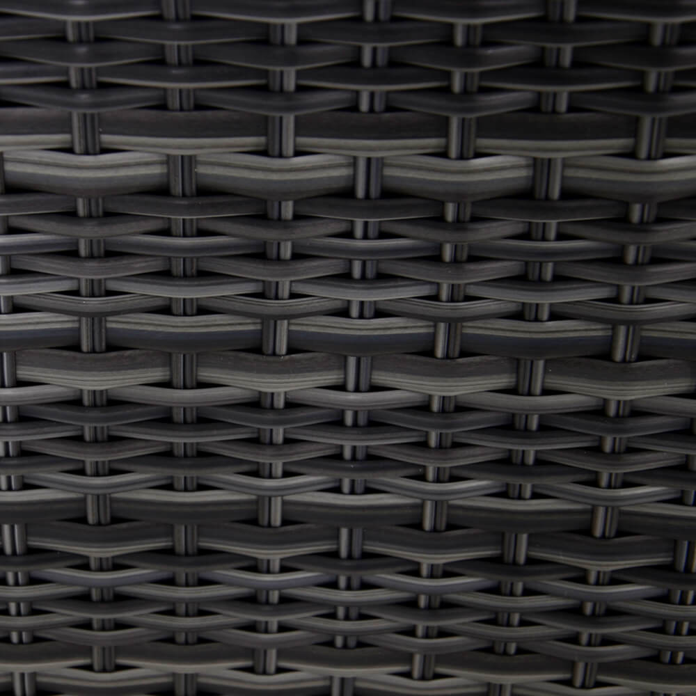 Ce fauteuil de jardin est fabriqué en aluminium sous un contrôle qualité rigoureux. La structure est recouverte d'un tressage en polyéthylène imitant le rotin. Les brins mesurent 8x2 mm d'épaisseur. Ce meuble d'extérieur est résistant aux intempéries et peut être utilisé toute l'année en extérieur. Les coussins épais sont confectionnés en polyester filé (220 gr/m^2) avec un rembourrage en mousse et coton. La hauteur d'assise est de 32 cm sans coussin, et la hauteur des accoudoirs est de 63 cm. Pour le nettoyage, un simple chiffon humide suffit. Il est déconseillé d'utiliser des produits nettoyants acides, car ils peuvent endommager la surface et réduire la résistance aux intempéries.