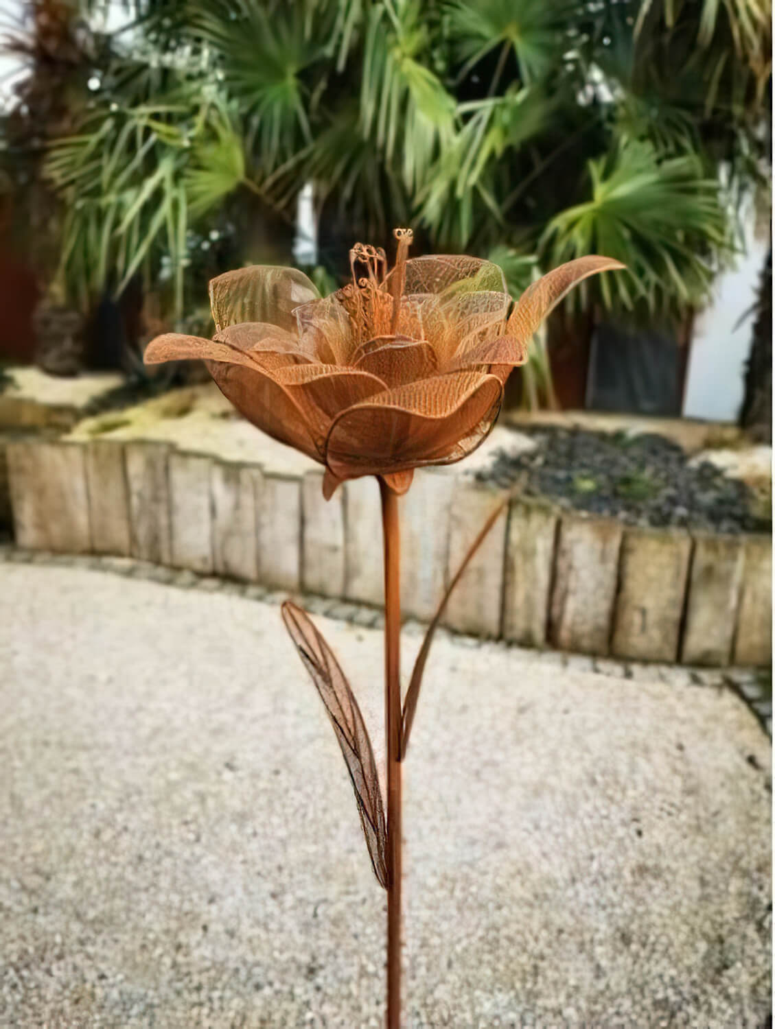 Gartenstecker Blume 3D aus Rost Metall - Esther