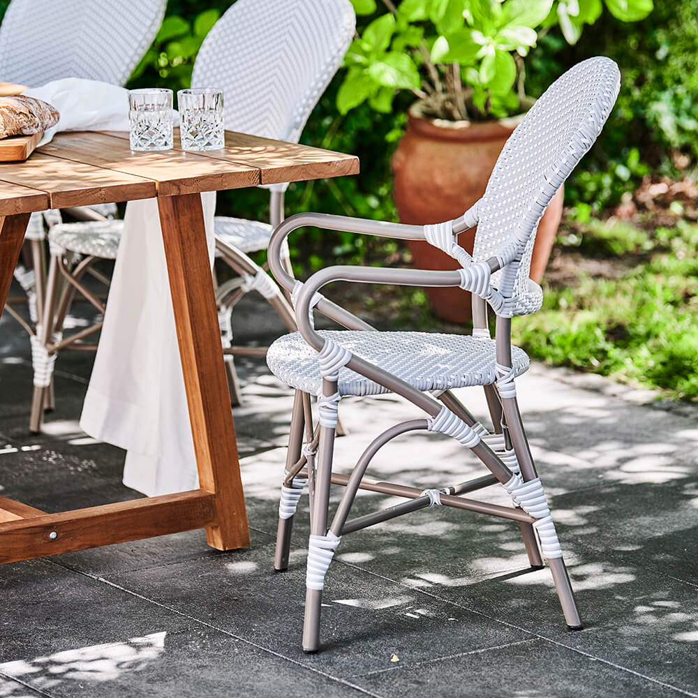 Avec une passion pour le rotin, l'artisanat et la durabilité, le fabricant séduit à l'international. Son objectif est de créer des meubles qui accompagnent pendant des décennies, alliant esthétique et fonctionnalité. Les pièces sont fabriquées en Indonésie dans le respect de l'environnement et du bien-être humain, et sont certifiées en conséquence. De nombreux designs ont été repris par des artistes renommés et réinterprétés grâce à l'utilisation de matériaux résistants aux intempéries. Les cadres en aluminium, façonnés à la main, sont tissés à la main avec la fibre synthétique Art Fibre. L'aluminium rotin est un aluminium thermolaqué, résistant aux chocs et aux rayures. La fibre Art Fibre est une fibre en polyéthylène teintée et très résistante. Grâce à sa résistance aux températures et aux UV, cette fibre supporte tous les climats. La structure de ce polyrattan est à la fois très solide, conservant sa forme pendant des années, et flexible, offrant un confort d'assise agréable. L'aluminium rotin et l'Art Fibre sont tous deux faciles d'entretien et se nettoient simplement à l'eau et avec un savon doux.