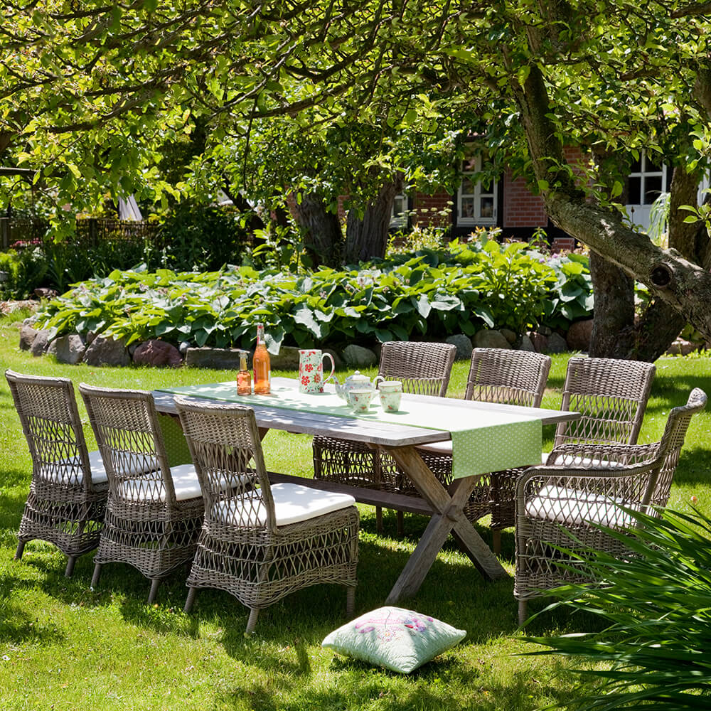 Le fabricant séduit à l'international grâce à sa passion pour le rotin, l'artisanat et la durabilité. Son objectif est de créer des meubles qui vous accompagnent pendant des décennies, alliant esthétique et fonctionnalité. Ces pièces sont fabriquées en Indonésie dans le respect de l'environnement et du bien-être humain, et bénéficient des certifications correspondantes. De nombreux designs ont été repris par des artistes renommés et réinterprétés grâce à l'utilisation de matériaux résistants aux intempéries. Les cadres en aluminium sont façonnés à la main et tissés à la main avec la fibre synthétique Art Fibre. L'Alu Rattan est un aluminium thermolaqué, résistant aux chocs et aux rayures. La fibre Art Fibre est une fibre en polyéthylène teintée et très résistante. Grâce à sa résistance aux températures et aux UV, cette fibre supporte tous les climats. La structure de ce polyrotin est à la fois très solide, conservant sa forme pendant des années, et flexible, offrant un confort d'assise agréable. L'Alu Rattan et l'Art Fibre sont faciles d'entretien et se nettoient simplement à l'eau et avec un savon doux.