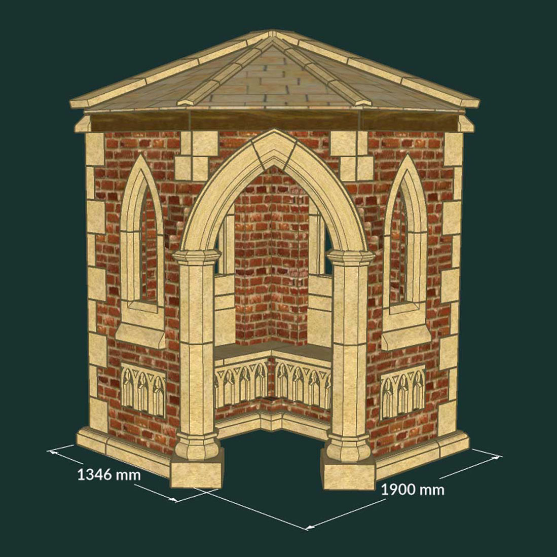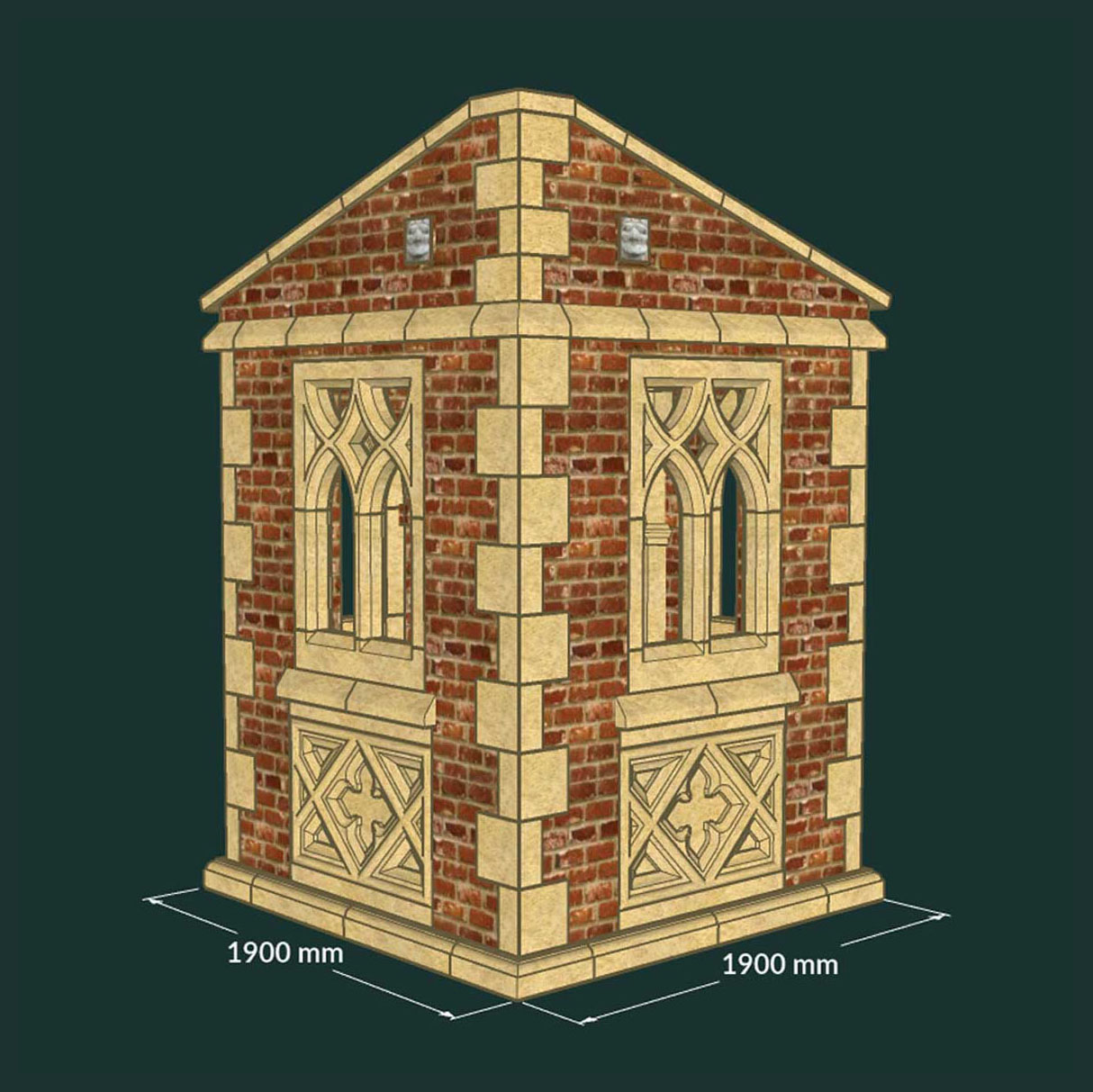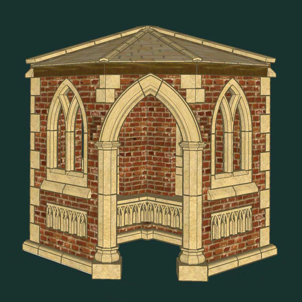 Geschlossener Ruinen Gartenpavillon - antik - mit Fenstern - Runcorn House / 190x190cm (BxT)