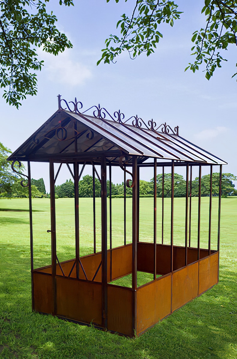 Cette serre unique, réalisée en fer forgé et ornée d'éléments décoratifs en fonte au design antique, est fabriquée à la main dans une forge traditionnelle. Vous pouvez choisir votre serre avec ou sans toit en zinc. De plus, il est possible de commander la petite maison avec ou sans fenêtres en verre assorties. Le toit de la serre est équipé d'une fenêtre basculante pour assurer une bonne ventilation. En ce qui concerne la couleur, aucune limite n'est imposée grâce à la palette RAL, offrant ainsi une option pour chaque goût. Que vous préfériez un vert classique ou un rouge éclatant, nous fabriquons la serre selon vos souhaits.