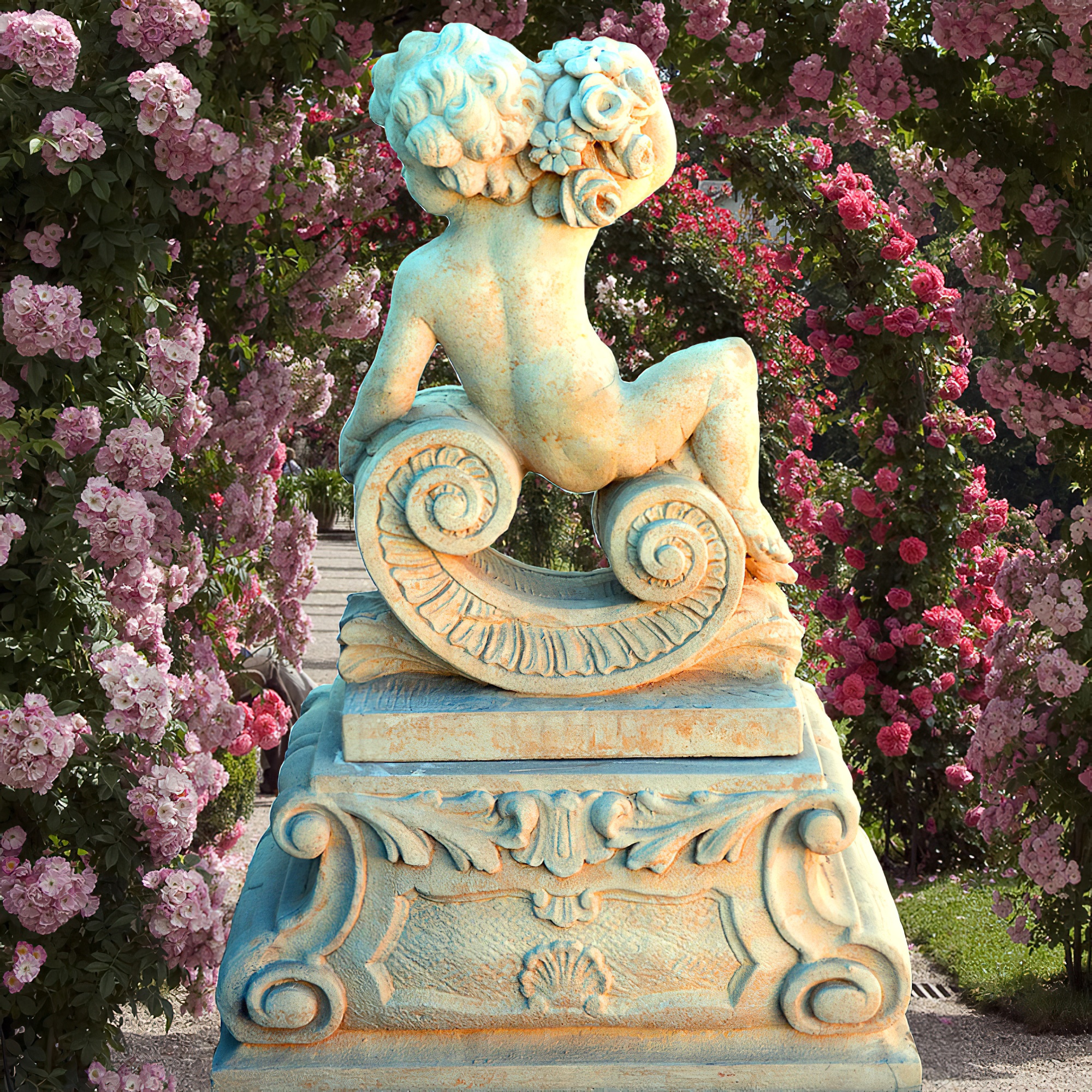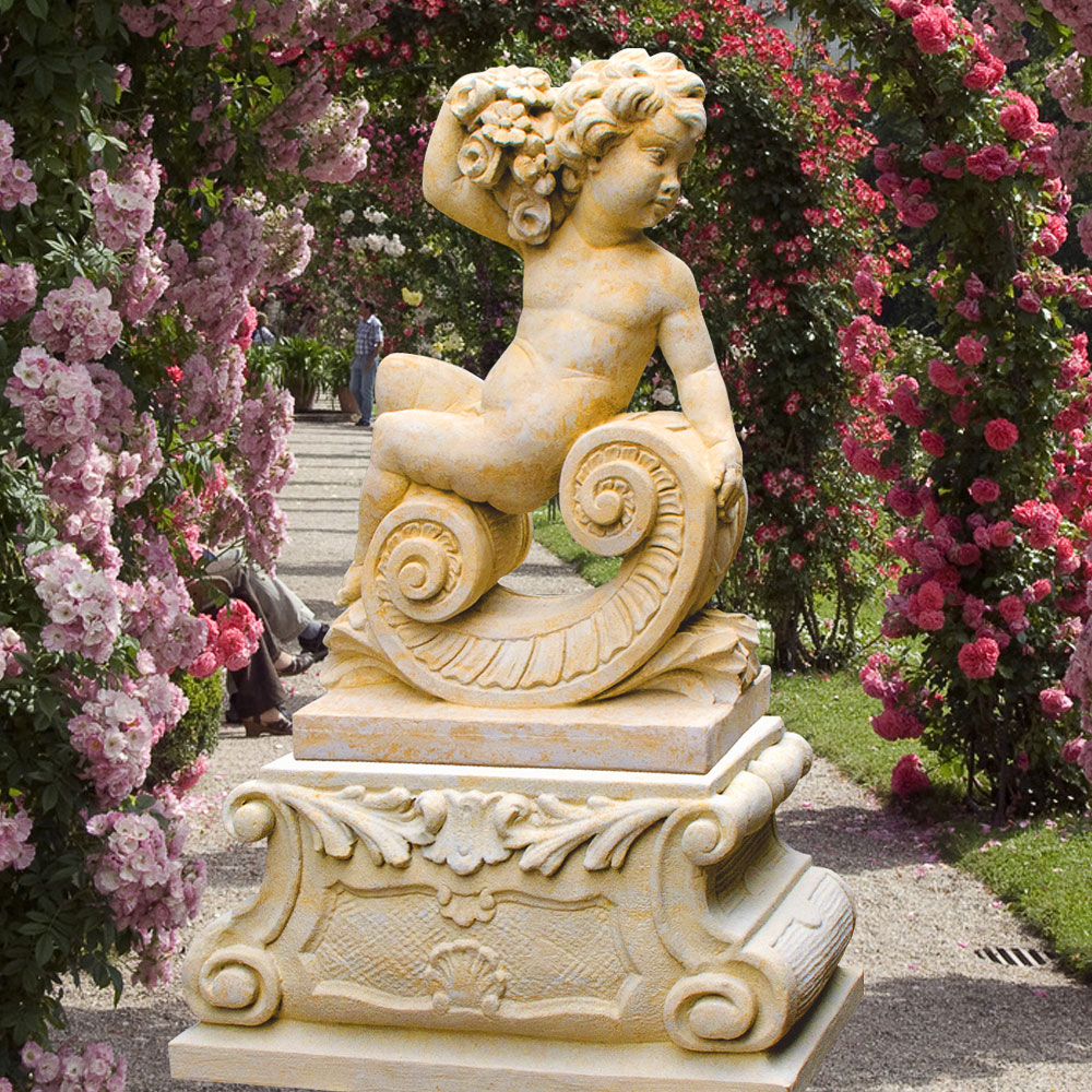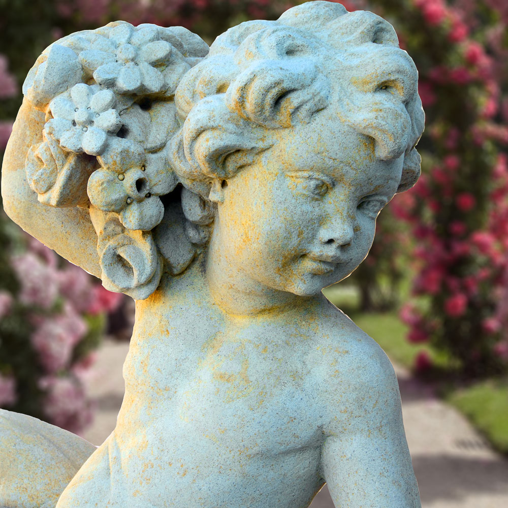 Große Barock Gartenskulptur Putte - Zechiel / Portland weiß / Ohne Sockel