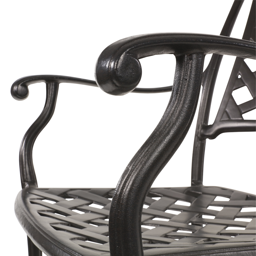 Ce mobilier robuste est fabriqué en aluminium moulé sous contrôle qualité permanent, avec un revêtement noir. Les meubles d'extérieur résistent aux intempéries et peuvent être utilisés toute l'année en extérieur. Pour le nettoyage, un peu d'eau et une éponge suffisent. Il est déconseillé d'utiliser des produits nettoyants acides, car ils peuvent endommager la surface et réduire la résistance aux intempéries.