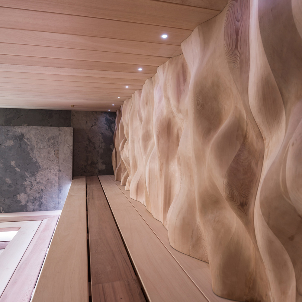 - 2 poêles de sauna derrière les bancs (12 kW/380V)