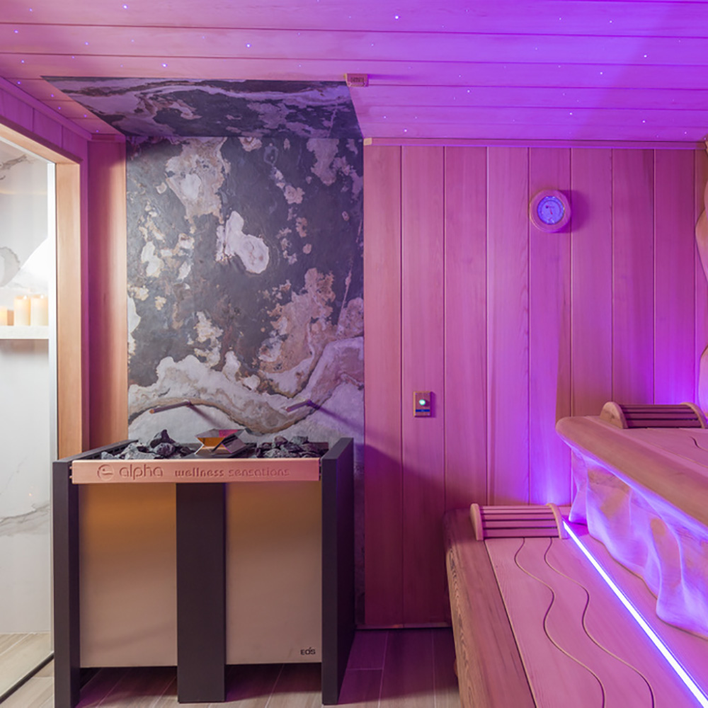 Le sauna est équipé d'un ensemble complet. Des souhaits supplémentaires en matière de design et d'équipement ainsi que des solutions bien-être sur mesure sont possibles. Voici un aperçu de l'équipement standard :