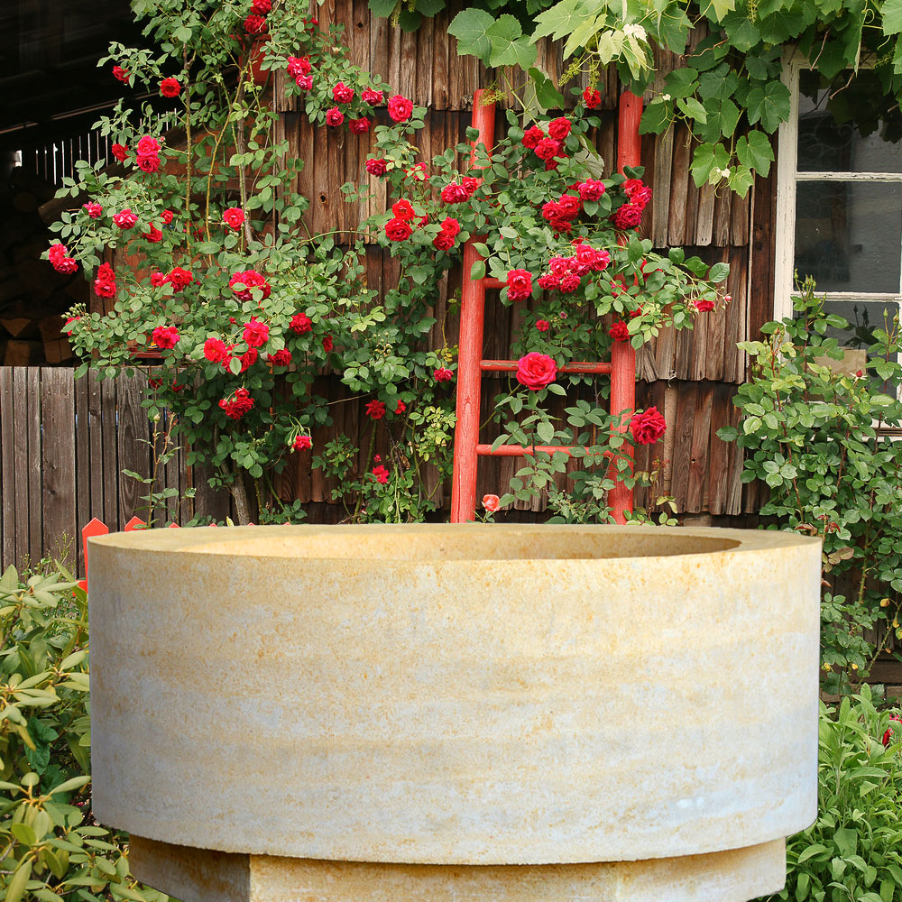 Bienvenue chez GARTENTRAUM - votre boutique en ligne spécialisée dans les bacs à plantes et pots en pierre naturelle noble, béton et fine pierre reconstituée. Ce grand bac à plantes en béton "La Forèt", au design épuré mais très décoratif, séduit par son élégance intemporelle et s'intègre harmonieusement dans presque tous les styles de jardin. Que ce soit dans le jardin avant, sur la terrasse ou dans un parterre de fleurs, nos bacs à plantes en béton moulé de haute qualité attirent le regard avec charme. La culture de plantes en pots, jardinières et vases de jardin a une longue tradition, qui connaît aujourd'hui un regain de popularité auprès des amateurs de jardinage. Enrichissez vos espaces extérieurs avec un grand bac à plantes en béton ainsi que divers contenants et vases de jardin en pierre reconstituée de qualité, et créez des points forts avec de magnifiques compositions florales. Ce grand bac à plantes en pierre est disponible en plusieurs versions, par exemple avec une patine d'aspect antique ou en pierre de grès blanc ou ocre, que vous pouvez commander dans notre boutique Gartentraum.