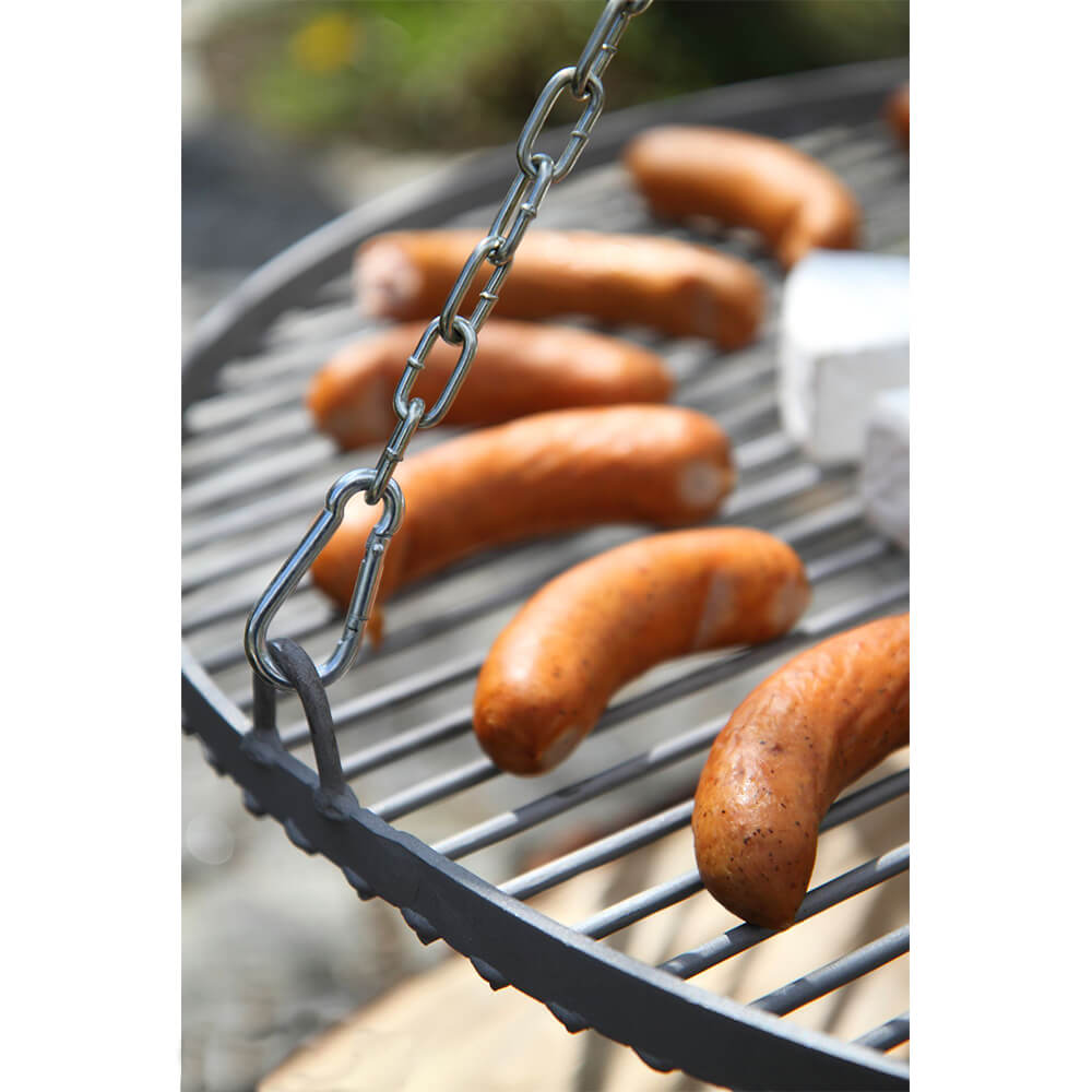 Ce magnifique barbecue trépied offre un confort de grillade détendu. Le cadre robuste du barbecue peut être plié de manière compacte pour un rangement protégé des intempéries ou pour le transport, et séduit par ses éléments forgés. Grâce à une poulie située au sommet du trépied, la longueur de la chaîne et donc la hauteur de la grille peuvent être facilement ajustées à la position souhaitée. À l'aide des crochets situés sur l'une des jambes, la chaîne peut être fixée à la hauteur désirée. Les deux niveaux de la grille vous permettent de cuire simultanément des aliments à différentes températures de cuisson. Ainsi, vous grillez toujours à la température parfaite. Les éléments forgés font également de ce barbecue un élément décoratif élégant pour votre espace extérieur. Pour profiter longtemps de ce beau produit, nous recommandons de le ranger à l'abri des intempéries lorsqu'il n'est pas utilisé.