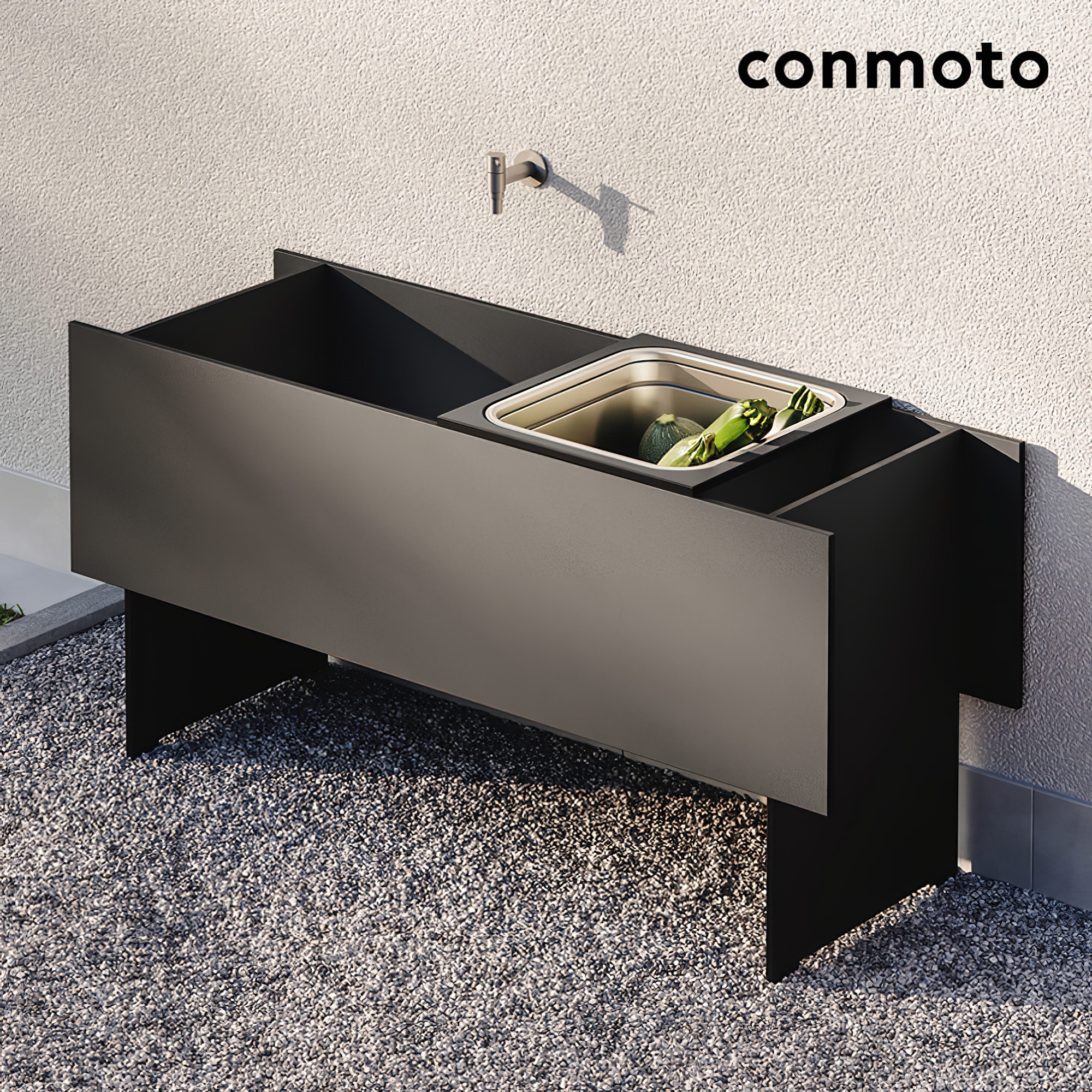 La cuisine d'extérieur est le complément idéal aux meubles de jardin de notre collection Conmoto et peut être librement combinée avec ceux-ci. Son design raffiné et sa grande robustesse soulignent la polyvalence de cette cuisine de jardin. Elle peut être utilisée aussi bien comme cuisine extérieure dans le jardin que sur la terrasse. La fabrication est possible en différentes tailles. Des variantes de couleurs personnalisées transforment votre jardin en un lieu de détente unique. Nous serons heureux de vous établir une offre sans engagement selon vos souhaits spécifiques.