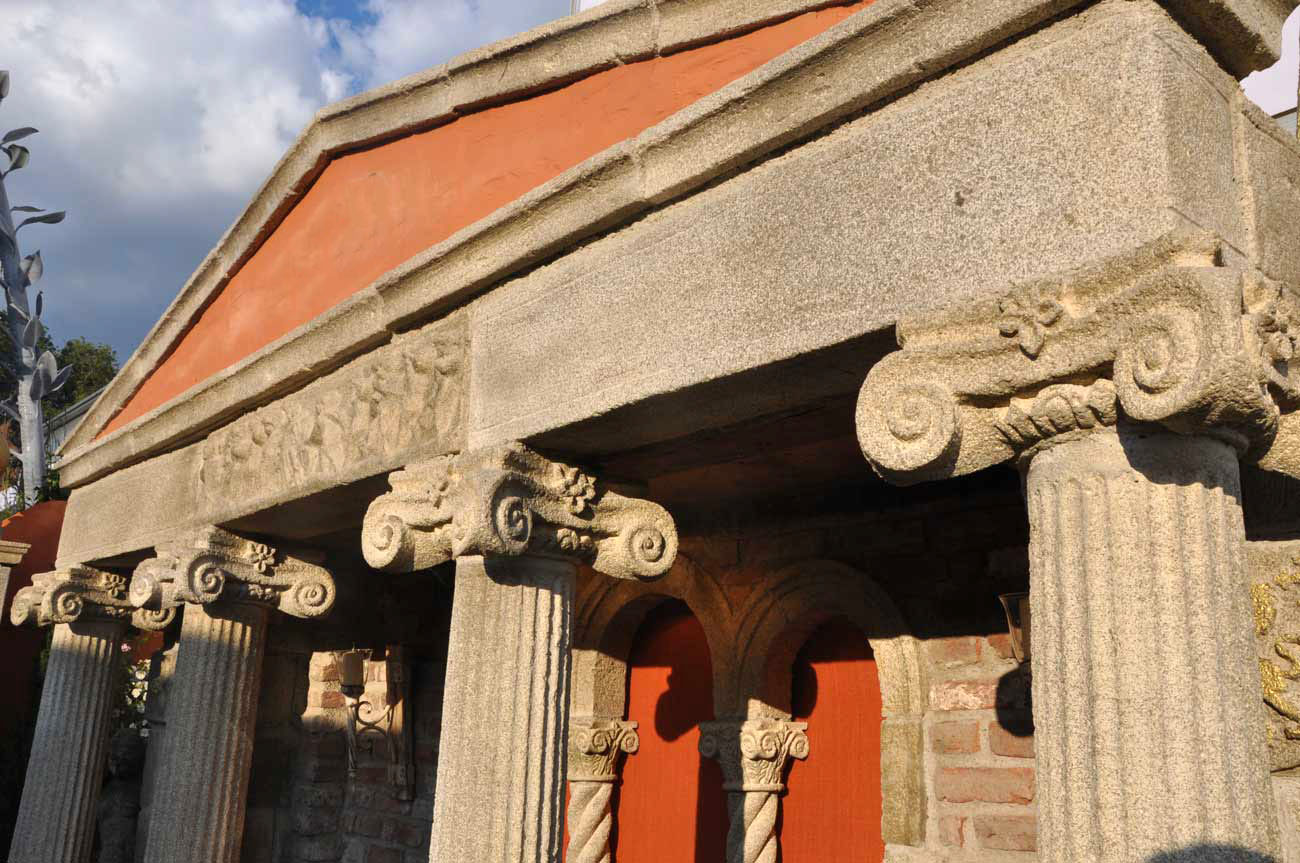 Halbgeschlossener Pavillon mit ionischen Säulen & Bank - Chichester Hall