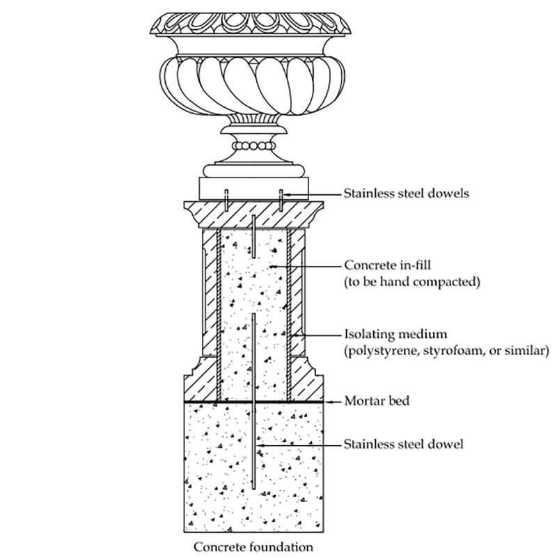 Socle noble pour le jardin en pierre reconstituée