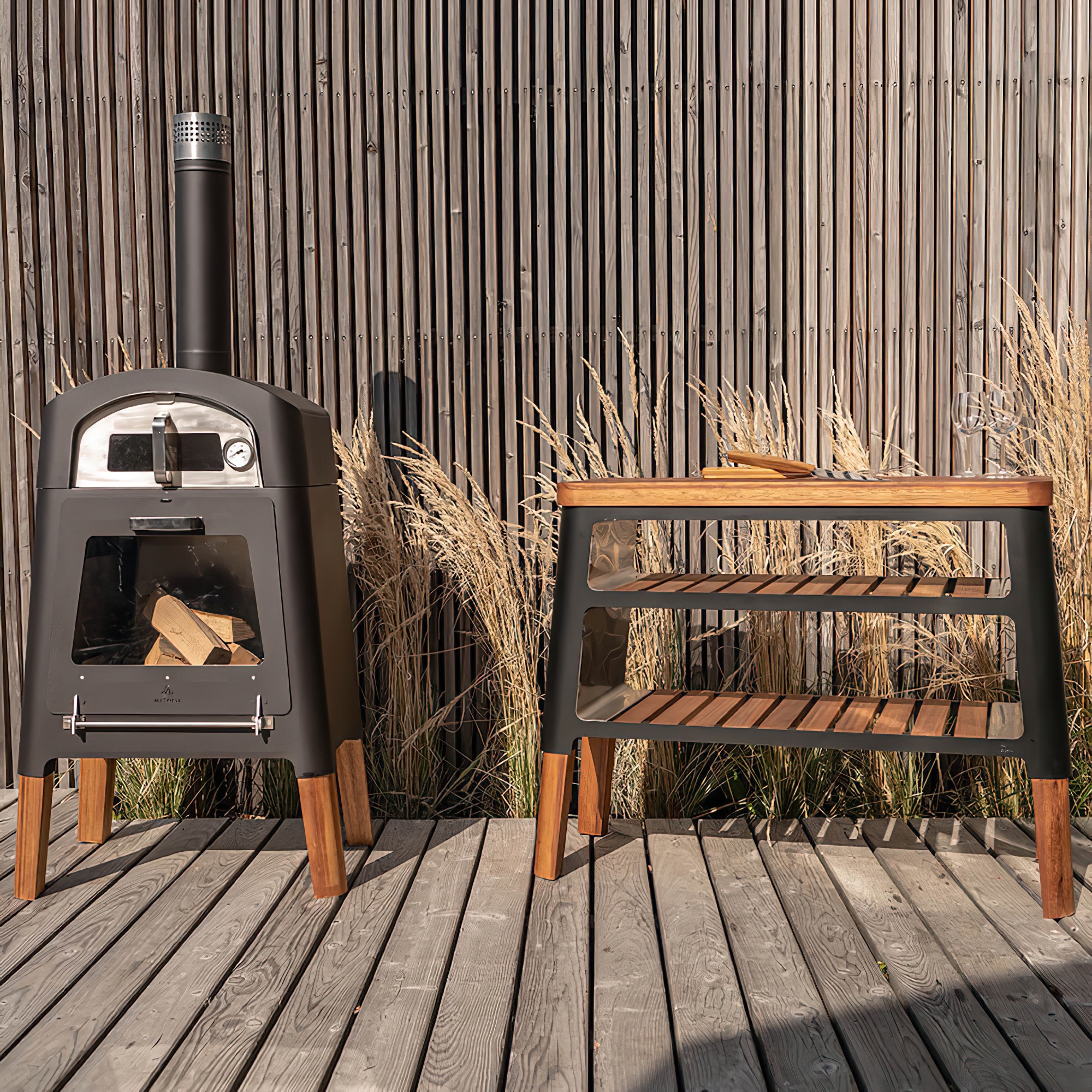 Holzofen für den Garten mit Pizzamodul und Ofentür - Masuria - Nexo Holzofen / Rost / nein