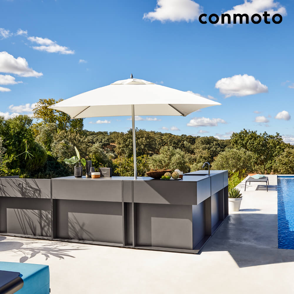 La cuisine d'extérieur est le complément idéal aux meubles de jardin de notre collection Conmoto et peut être librement combinée avec ceux-ci. Son design raffiné et sa grande robustesse soulignent la polyvalence de la cuisine de jardin. Elle peut être utilisée aussi bien comme cuisine extérieure dans le jardin que sur la terrasse. Une fabrication en différentes tailles est possible. Des variantes de couleurs personnalisées transformeront votre jardin en un lieu de détente unique. Nous serons heureux de vous fournir une offre sans engagement pour vos souhaits particuliers.