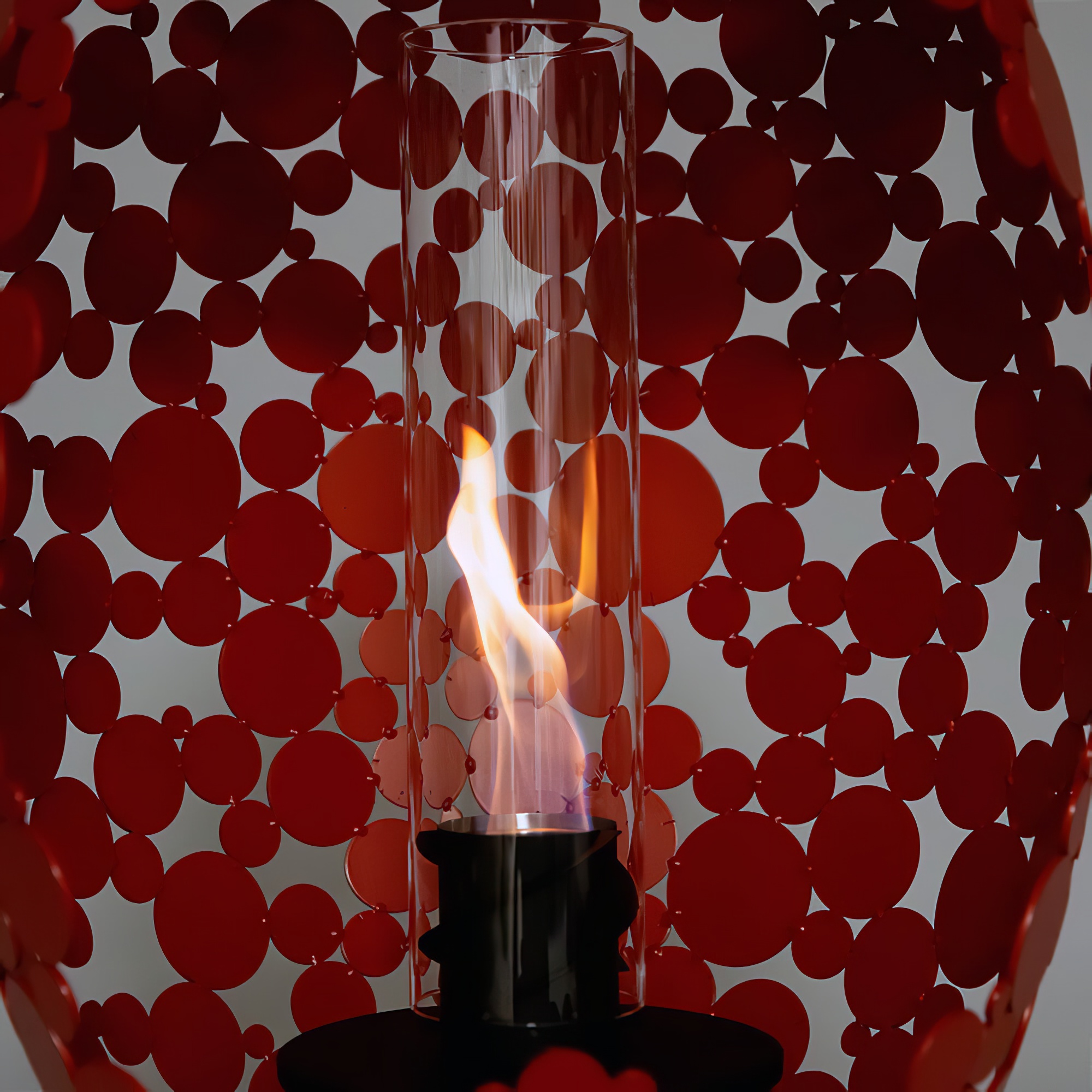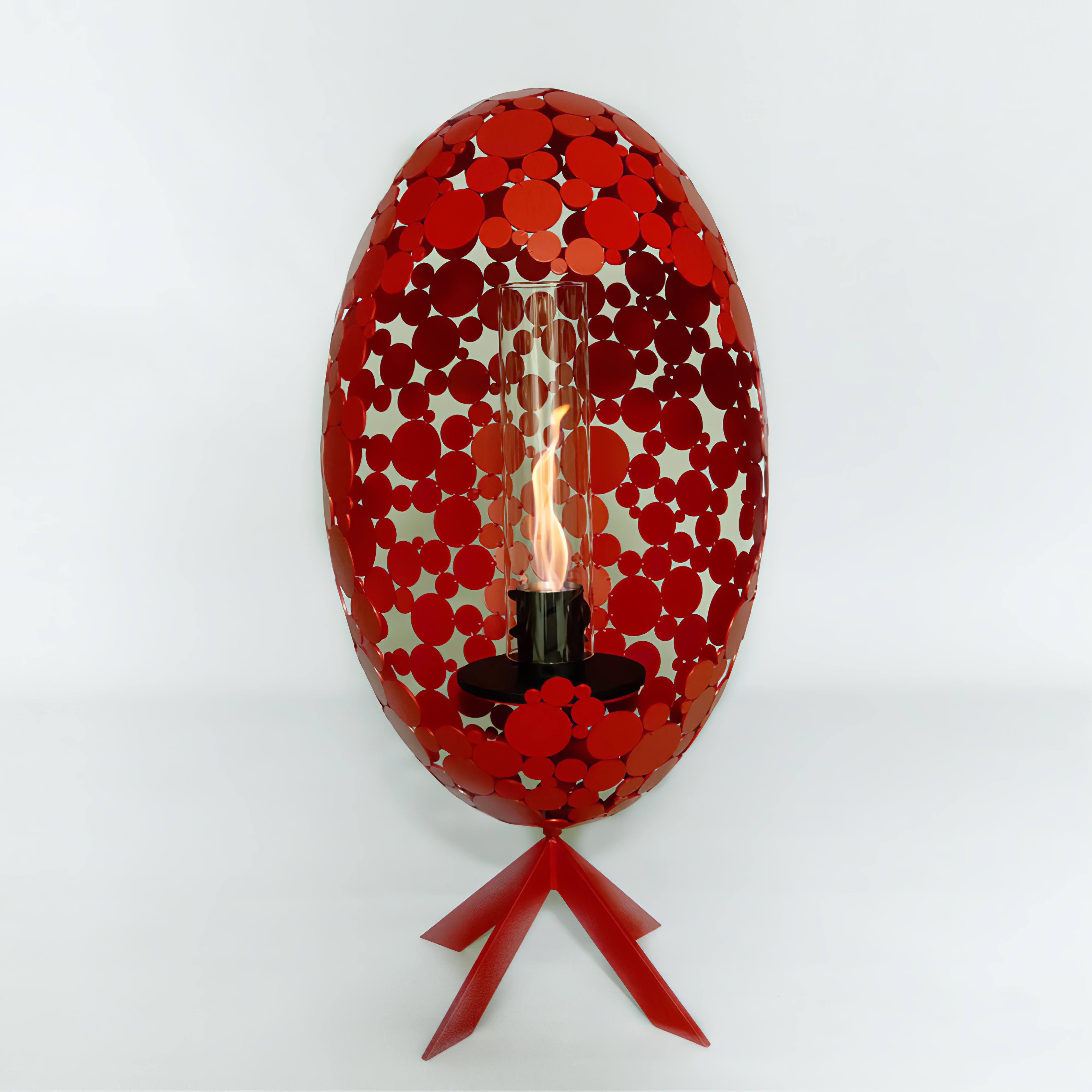 In Handarbeit gefertigtes Metallkunstwerk mit Ethanol Windlicht - Mateo / Rot / 100x60cm (HxB) / Ethanolofen mit goldenem Fuß