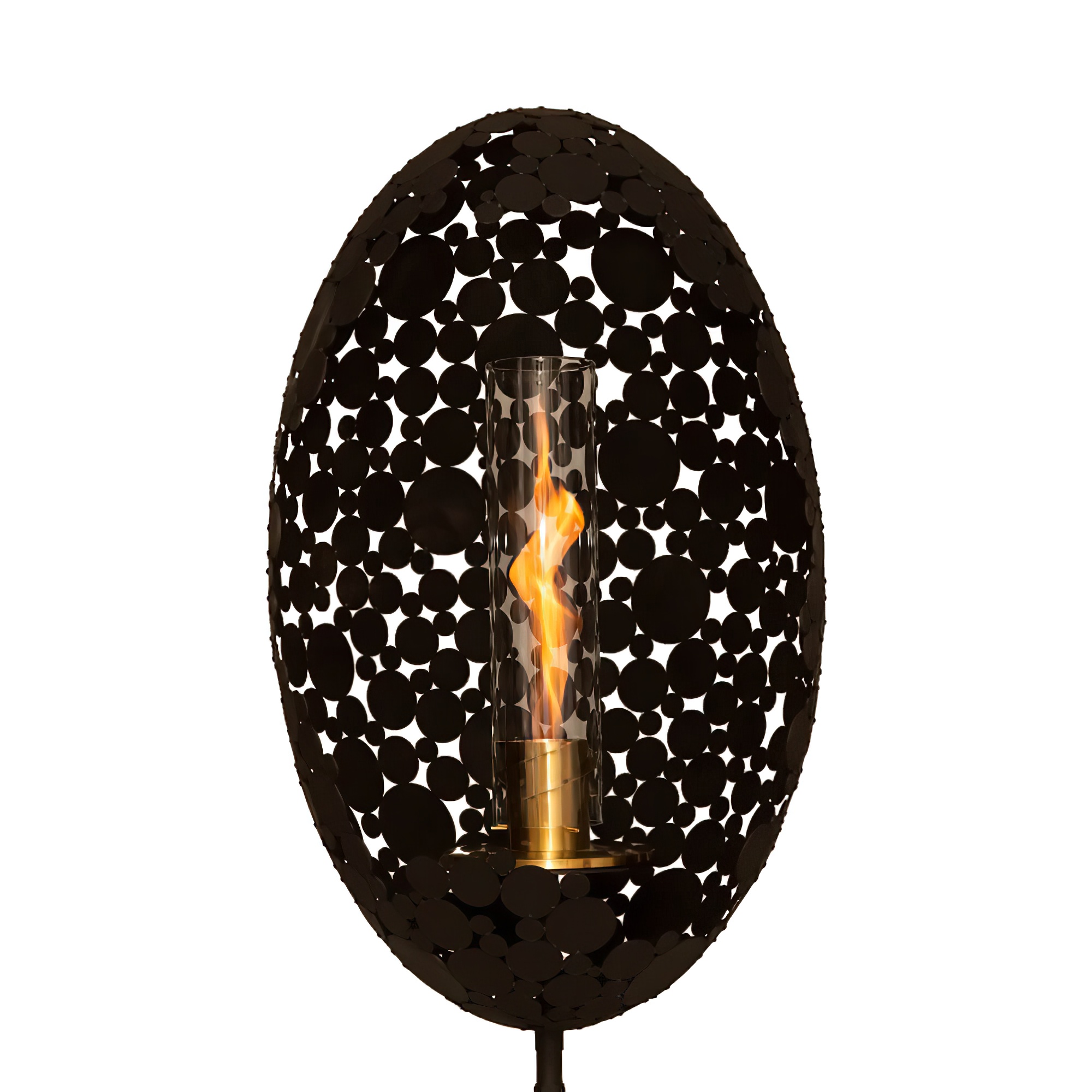 Les flammes douces et dansantes associées à ce cocon attirent le regard et créent une ambiance chaleureuse. Le foyer à éthanol mesure 54 cm de hauteur totale. La base a une surface de 23 cm et le cylindre en verre a un diamètre de 12 cm. Ce cylindre en verre est fabriqué en verre borosilicaté de haute qualité. Le foyer est conçu pour 500 millilitres d'éthanol bio et offre une durée de combustion d'environ 80 minutes. Ce foyer portable peut être déplacé facilement.
