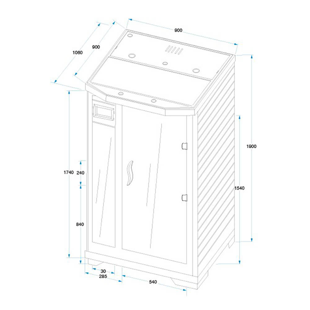 - cabine en bois angulaire avec 4 émetteurs céramiques et design élégant