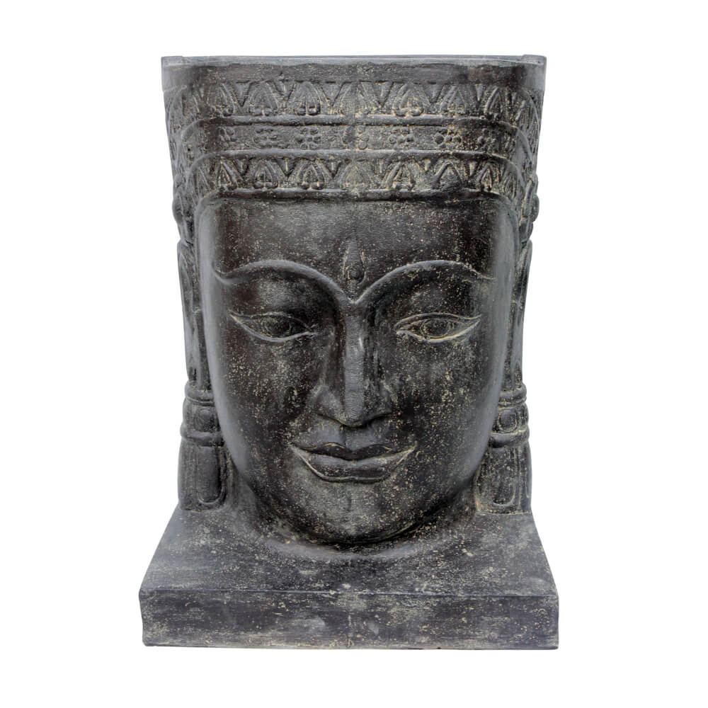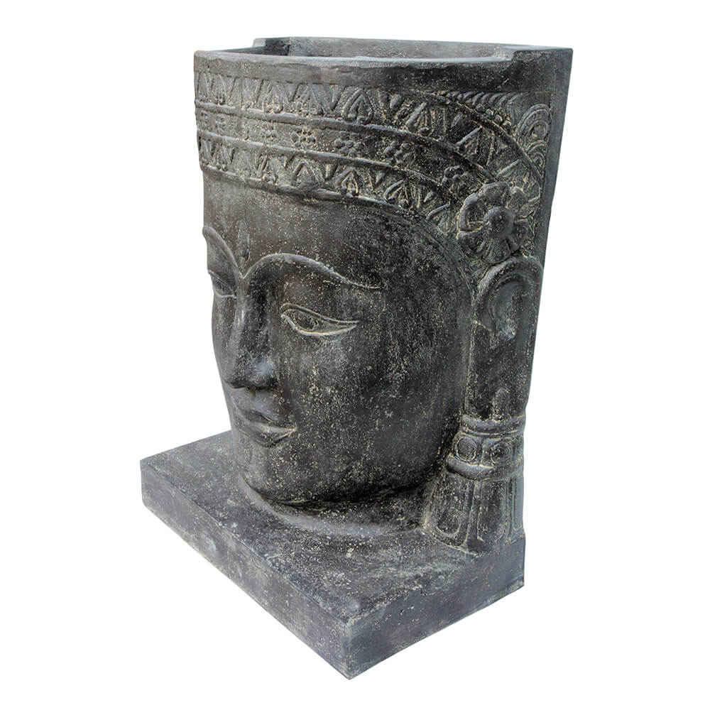 Khmer-Kopf Wasserspiel aus Steinguss mit Sockel - Kefali / Standard
