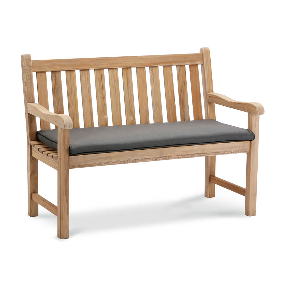 Klassische 2-Sitzer Holz Gartenbank mit Auflage - Bank Brun + Auflage / Grau