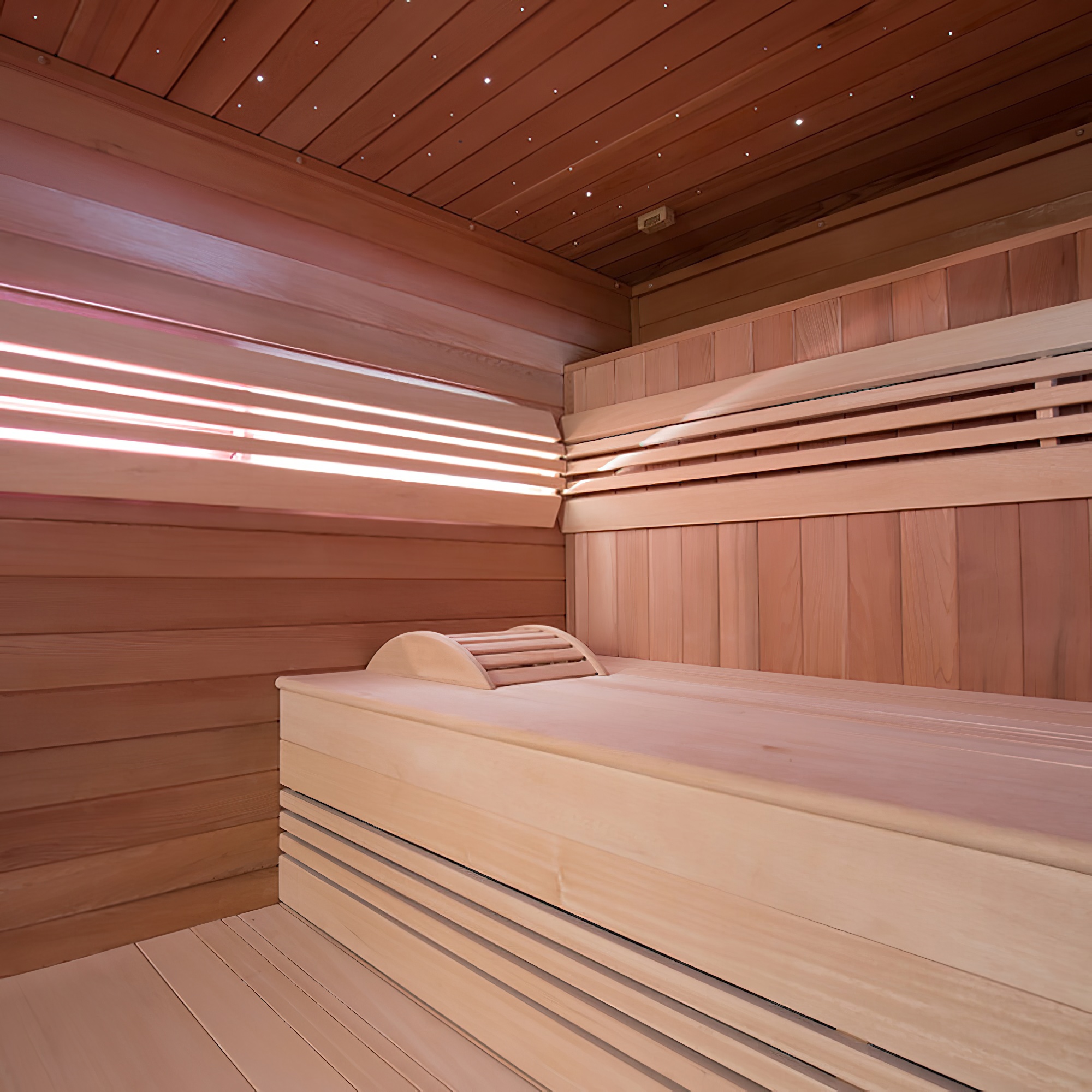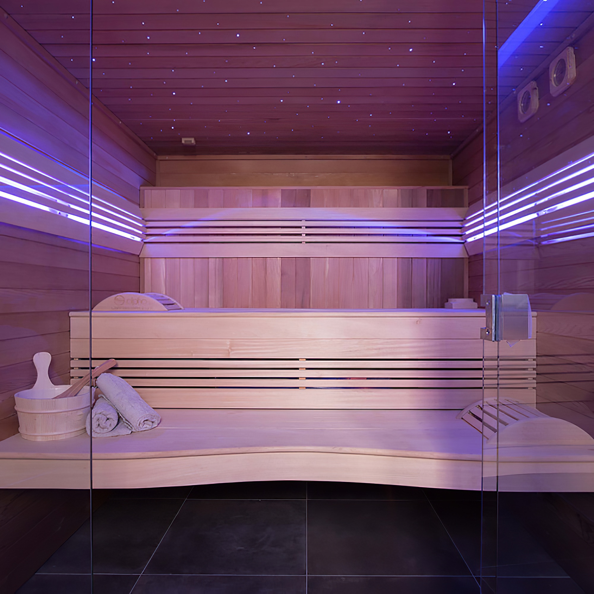 Le sauna est livré avec un équipement complet. Certains éléments sont à choisir par vos soins. Des options de personnalisation et des solutions wellness sur mesure sont possibles. Voici un aperçu de l'équipement standard :