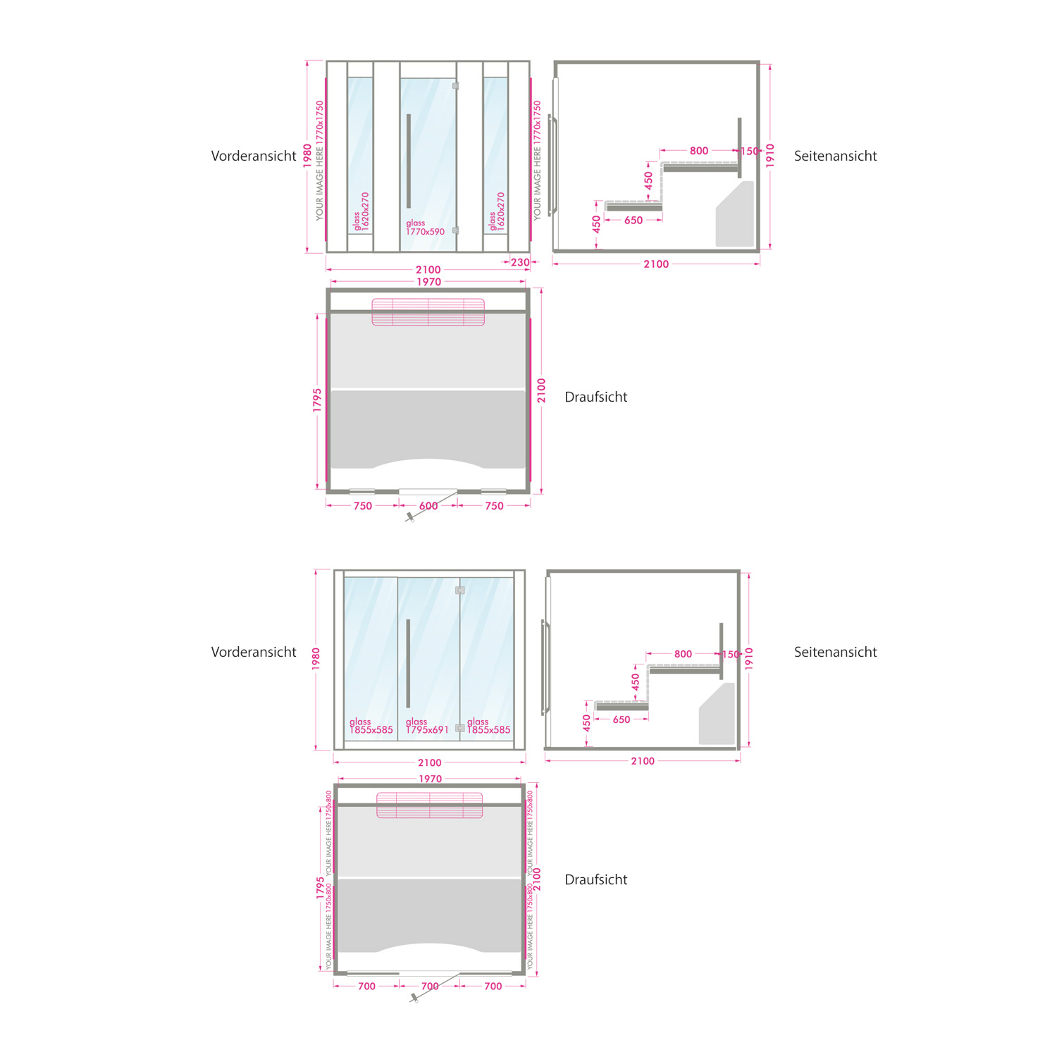 Komfortable Indoor Sauna für 6 bis 8 Personen in Farbe nach Wahl - Kija / mit Glastür / Finnische Sauna