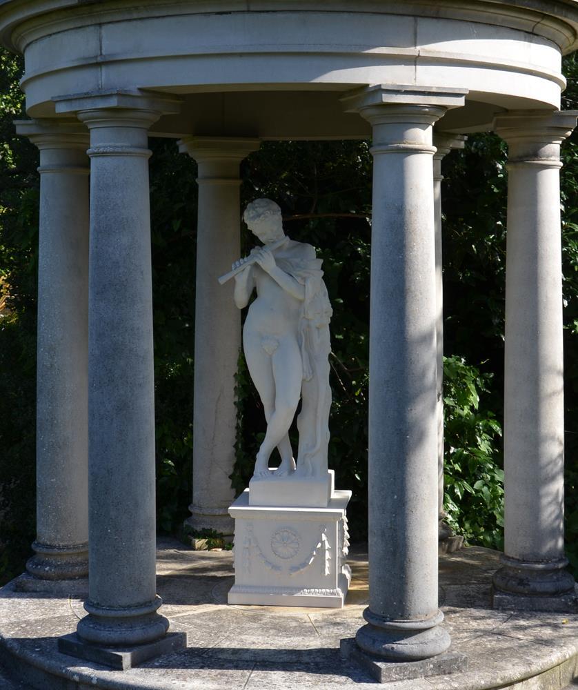 Cette sculpture de jardin grandeur nature en pierre reconstituée représente un joueur de flûte. L'original antique de cette statue se trouvait à la Villa Borghese, a ensuite été achetée par Napoléon et finalement exposée au Louvre. Les sculptures de jardin sont idéales pour attirer le regard dans votre jardin ou sur votre terrasse. Nos sculptures sont fabriquées selon une méthode traditionnelle de moulage en pierre reconstituée, ce qui les rend résistantes aux intempéries et durables.