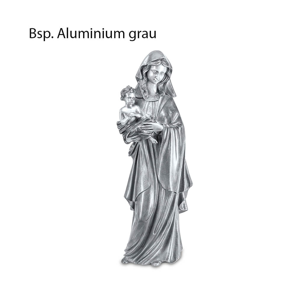 L'aluminium est extrêmement résistant au gel, à l'humidité et à la chaleur, et possède une grande longévité. La patine est appliquée manuellement, ce qui confère à chaque sculpture une unicité grâce aux nuances de couleur variables. La teinte peut donc légèrement différer de l'image. Le nettoyage doit s'effectuer sans produits chimiques afin de ne pas endommager la couche protectrice, et peut simplement se faire avec un chiffon humide. Les statues de jardin sont équipées de trous sous la base pour fixation sur un socle. Des tiges filetées adaptées sont fournies avec la livraison.