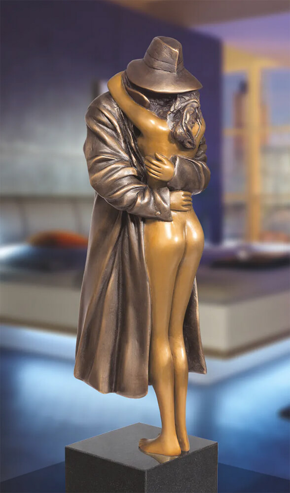Limitierte Bronze Künstlerfigur Paar mit Granitsockel - The Kiss